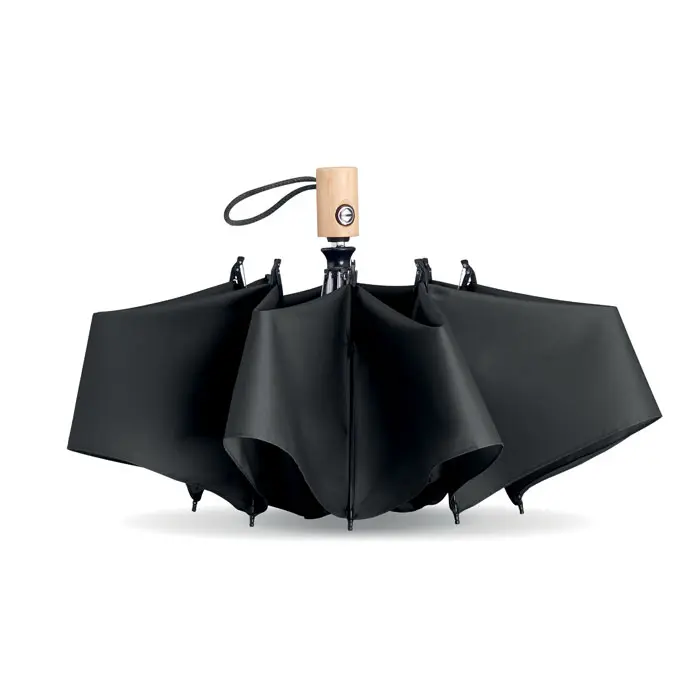 €11.10Kišobran automatskog otvaranja/zatvaranja, 3 preklopa, promjera 23 inča, izrađen od 190T pongee RPET materijala. Rebra su od stakloplastike. Drška je od bambusa s pamučnom vezicom za zapešće. Uključuje odgovarajuću RPET torbicu. Bambus je prirodni materijal, moguće su male varijacije u boji i veličini po proizvodu, što može utjecati na konačni rezultat dekoracije.