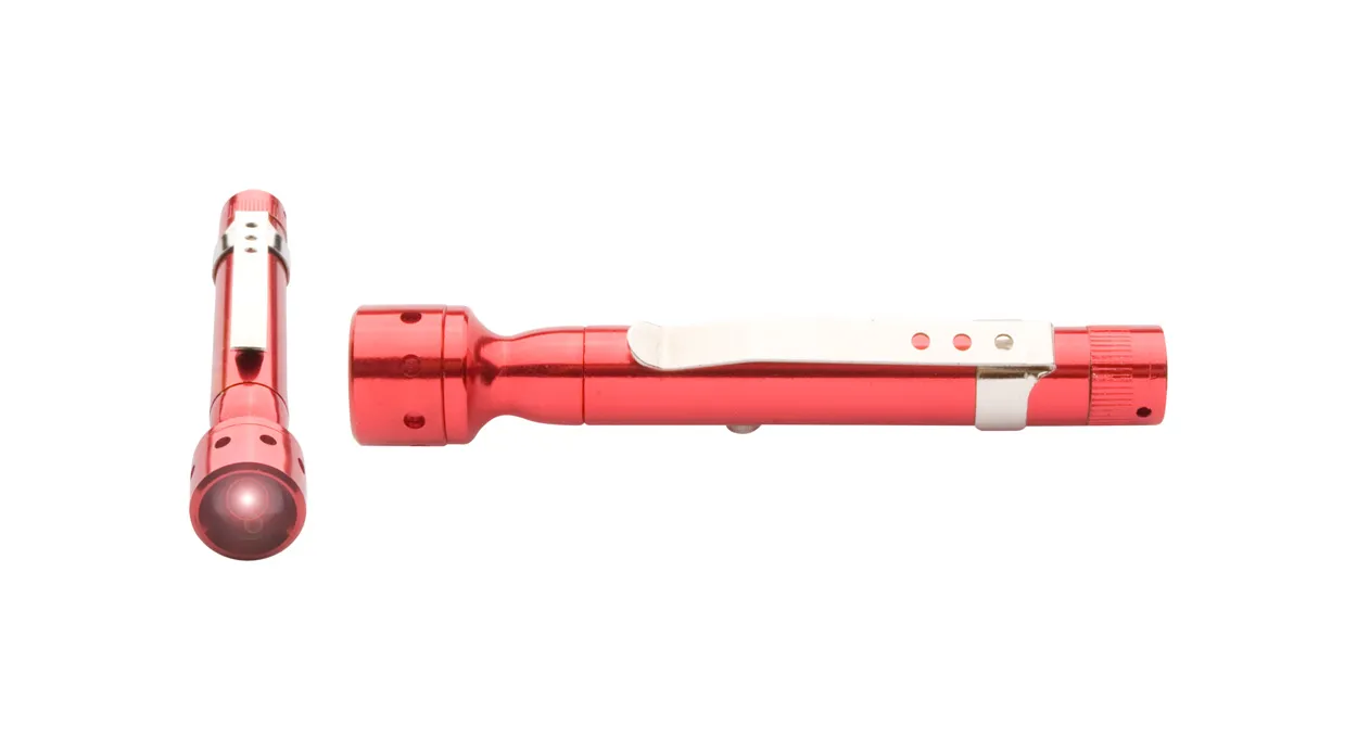 €0.93Mini svjetiljka od obojenog metala s privjeskom za ključeve i klipom, radi na 4 AG5 baterije, isporučuje se bez baterija