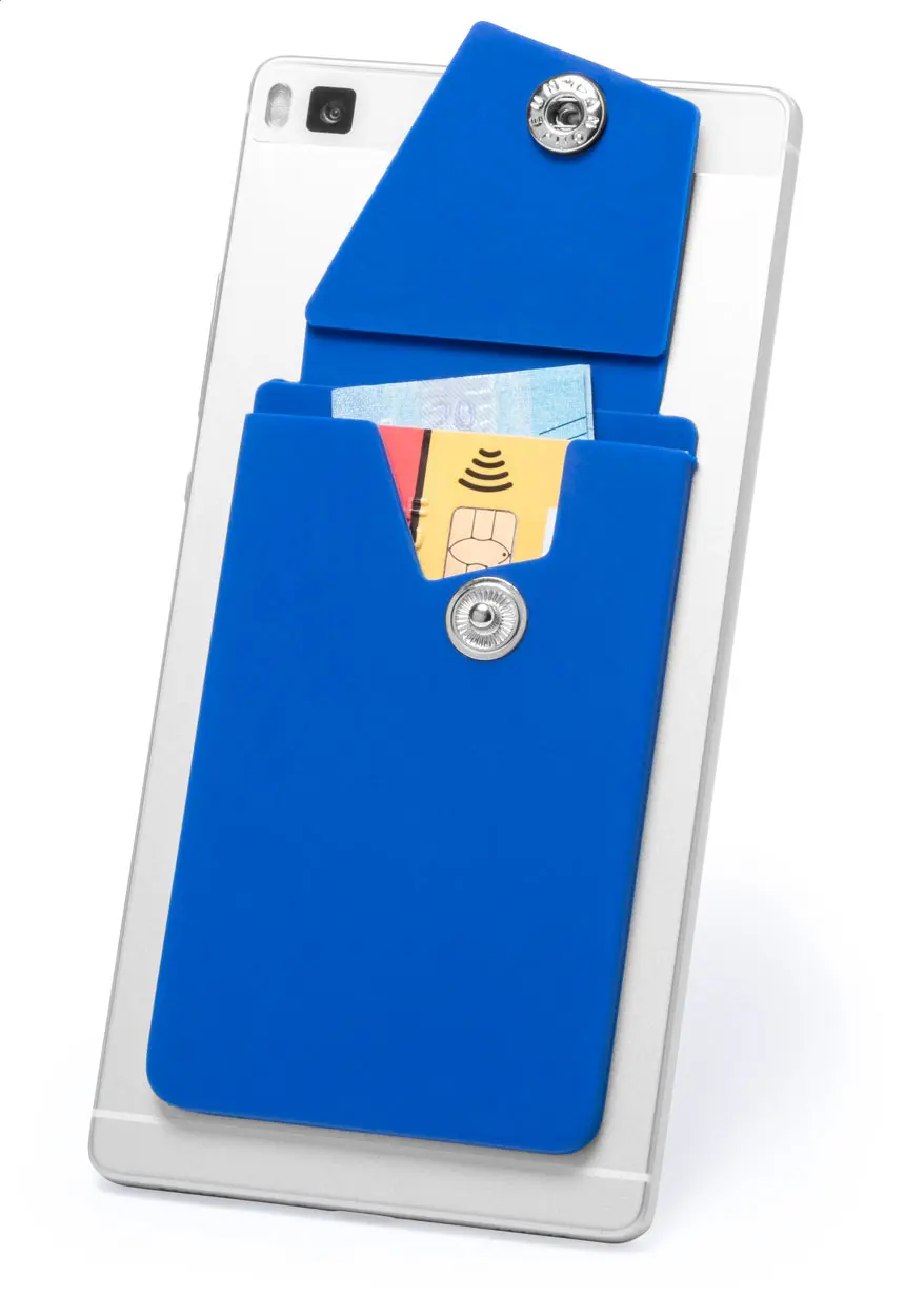 Držač za kartice od silikona s samoljepljivom bazom i funkcijom držača za mobilni telefon.