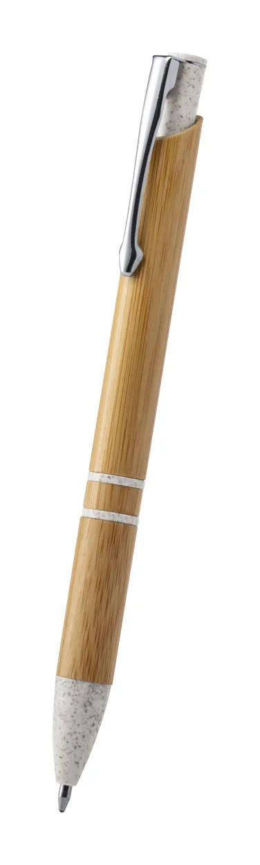 Bamboo ballpoint pen with ecological wheat straw plastic parts and metal clip. With blue refill.