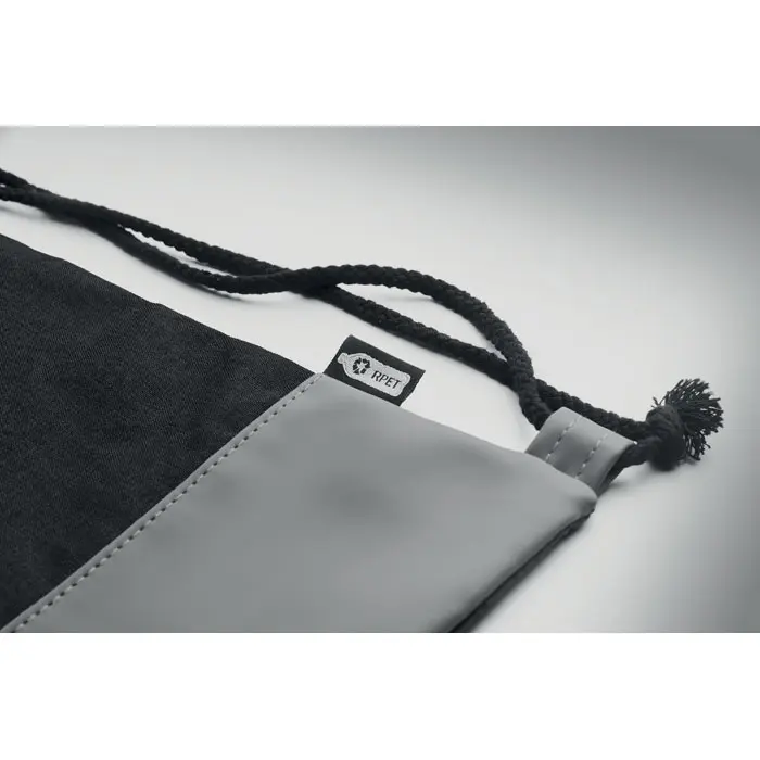 vrećica s vezicom od dvoslojnog 300D RPET poliestera s mekanim PU detaljem i polikoton vezicom