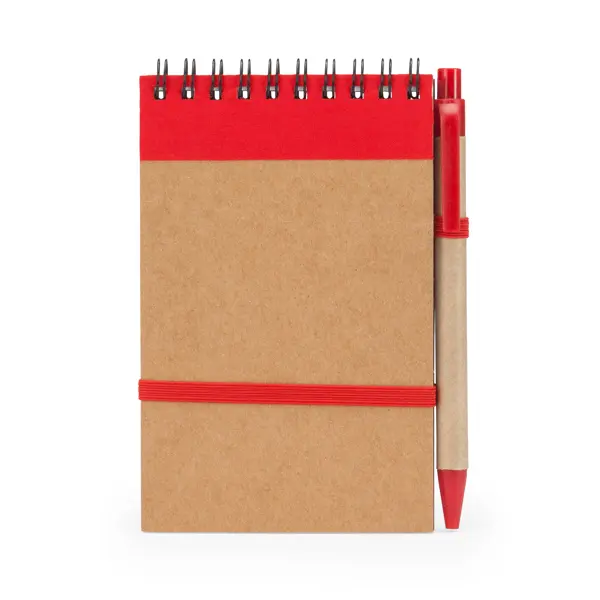 €0.64Bilježnica s prstenastom spiralom s tvrdim koricama od recikliranog kartona. Uključuje odgovarajuću olovku s plavom tintom. 70 listova.