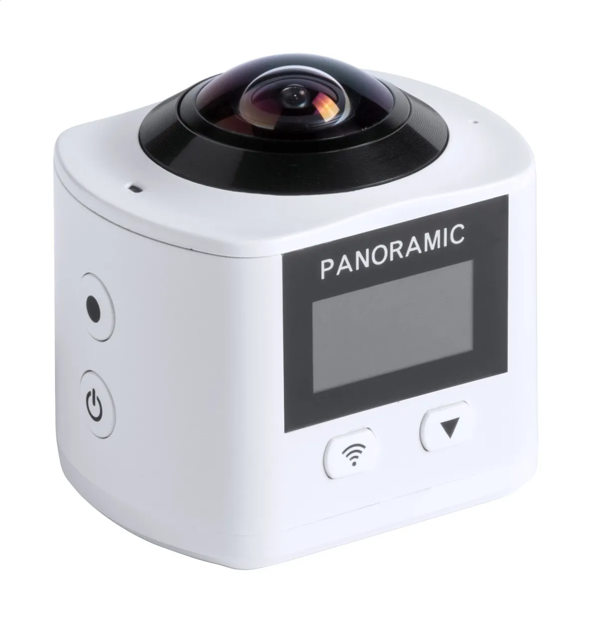 Plastična, 4K kamera s 360 stupnjeva snimanja i WiFi-jem, 0,96" OLED ekranom, višejezičnim izbornikom, ugrađenom punjivom baterijom i 11 dodataka.