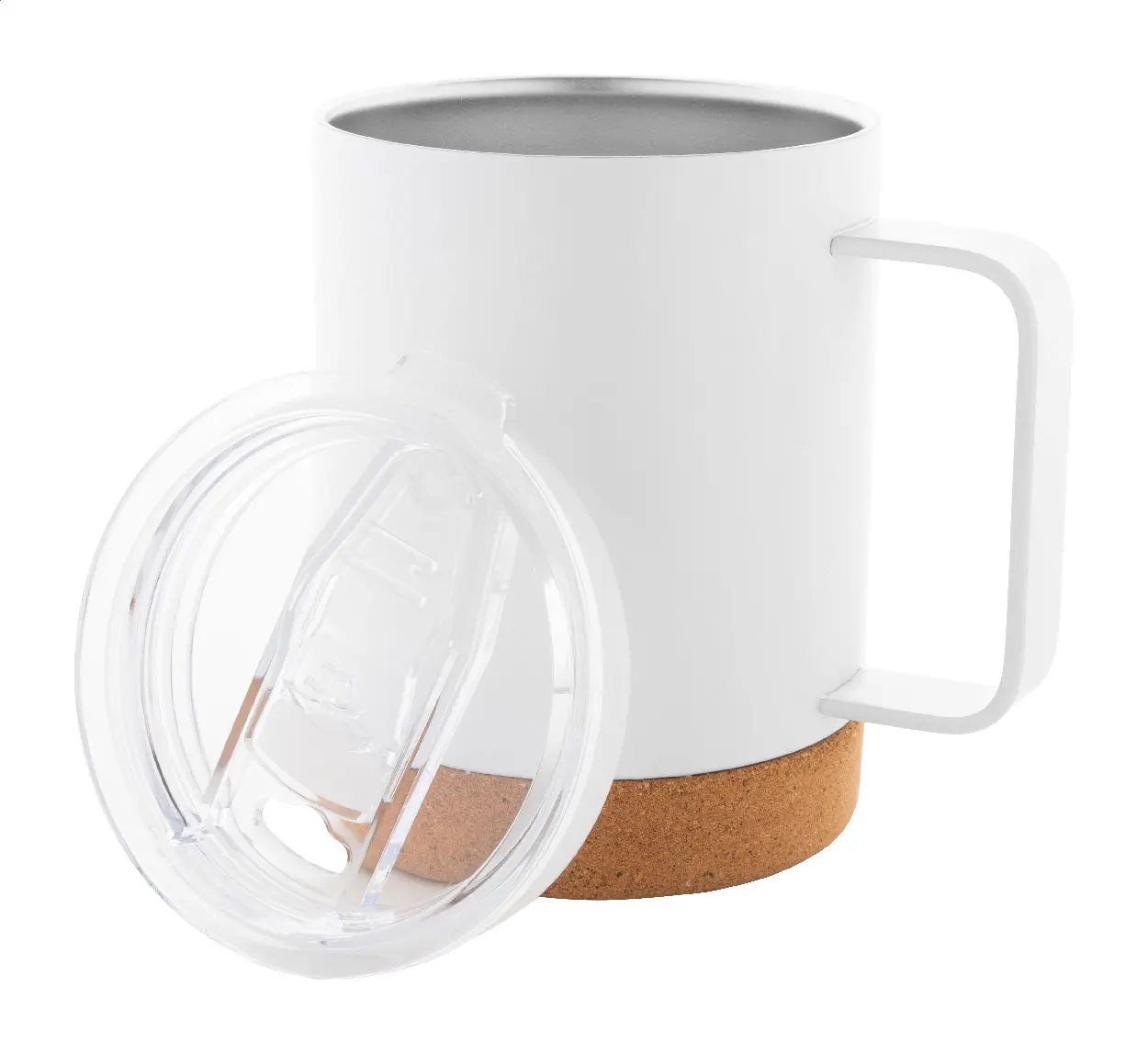 Termo šalica od nehrđajućeg čelika s dvostrukim zidom, poklopcem za piće i prirodnim plutom na dnu, 330 ml. Dolazi u kutiji od kraft papira.