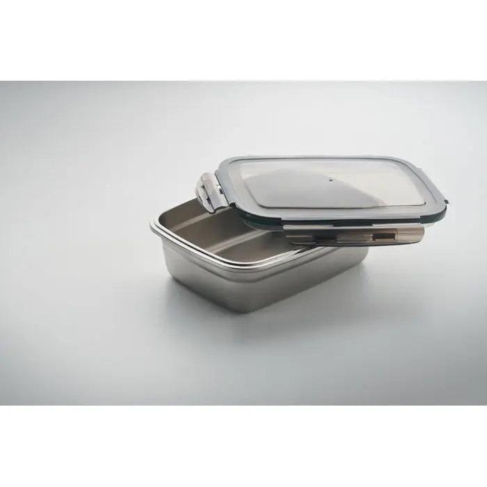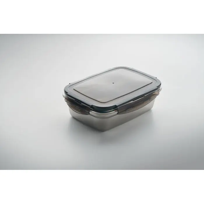 Lunch box od recikliranog nehrđajućeg čelika s PP poklopcem i zatvaranjem na 4 kopče, kapacitet 850 ml