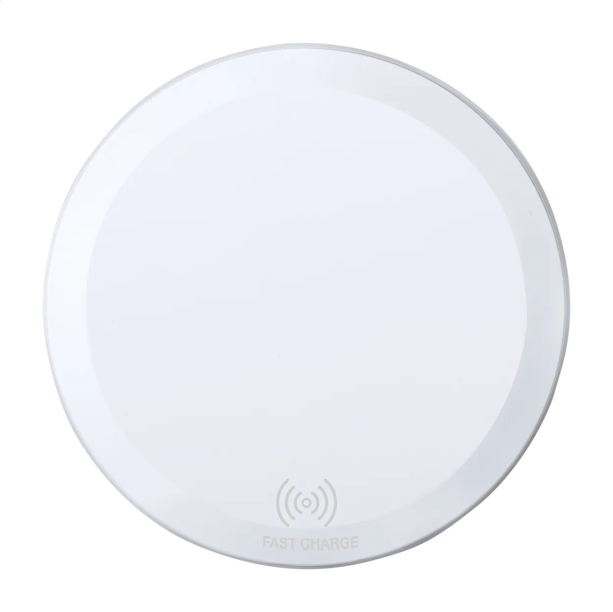 Bežični brzi punjač (10W) u plastičnom kućištu s LED indikatorom punjenja i bazom protiv klizanja. Uključuje USB kabel za punjenje.