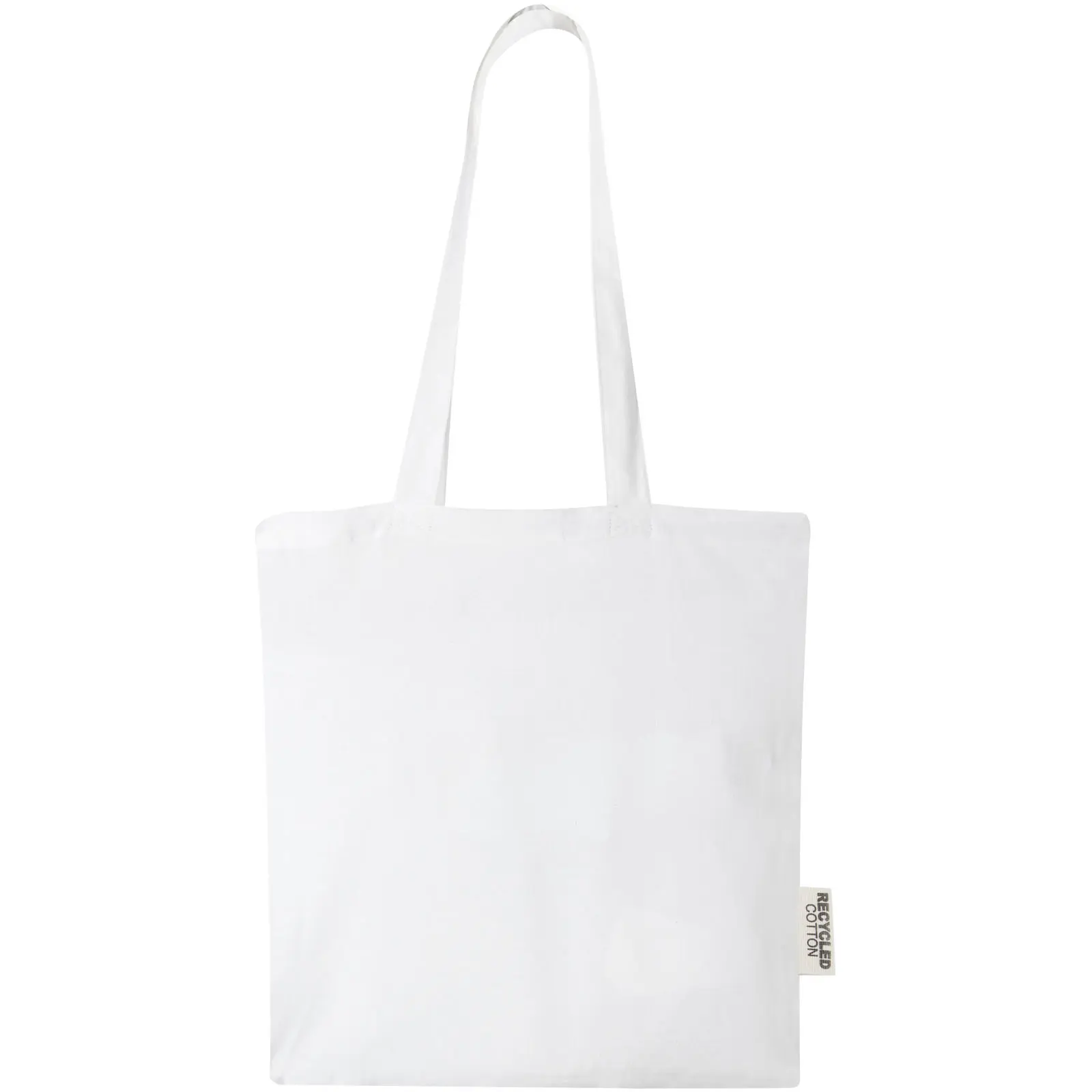 Madras torba izrađena od 100% GRS certificiranog recikliranog pamuka idealna je za poklanjanje tijekom bilo kojeg događaja, konferencije ili kao shopping torba za manje namirnice. Gustoća pamuka od 140 g/m² čini torbu čvrstom, dugotrajnom i pogodnom za nošenje teških predmeta u glavnom pretincu. S 30 cm dugim ručkama za nošenje na ramenu, ova torba lako se nosi. Metode tiska dostupne za ovu torbu također su GRS certificirane, osiguravajući da je cijeli lanac opskrbe transparentan i certificiran. Proizvedeno u Indiji. Otporno do 5 kg težine.