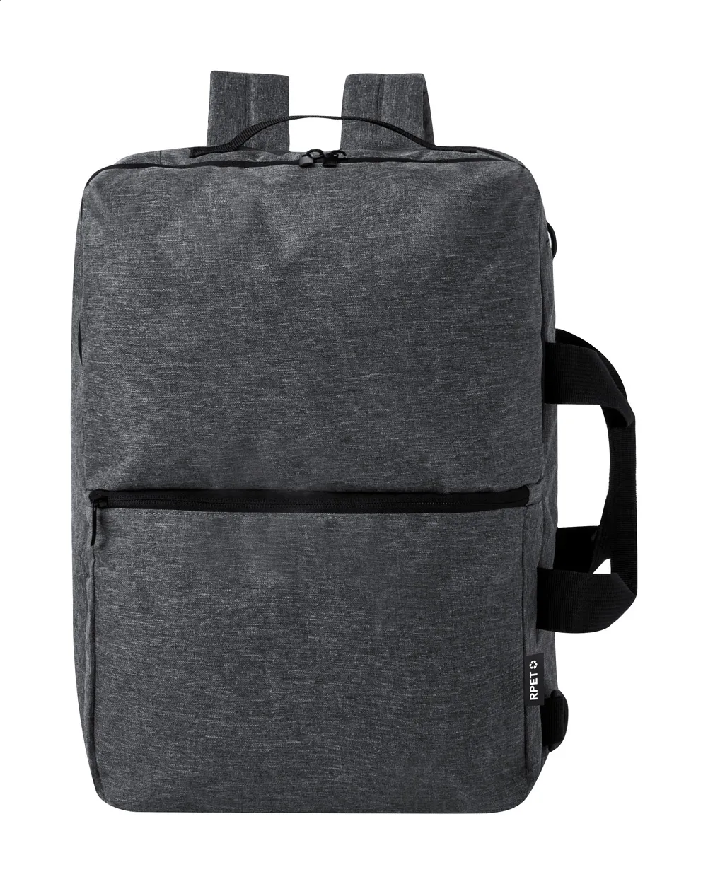 RPET ruksak i torba za dokumente s dvostrukom funkcijom s pretincima na patentni zatvarač podstavljenim pretincem za laptop (15'') podstavljenim leđima i naramenicama 600D RPET poliester s prepoznatljivom RPET etiketom