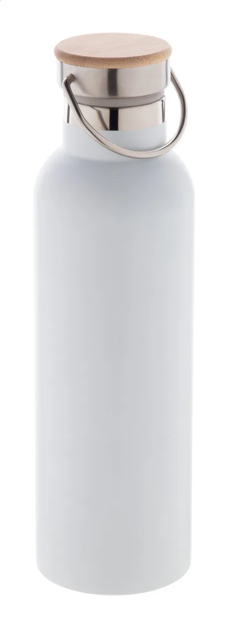Dvostruko zidana boca od nehrđajućeg čelika s vakuumskom izolacijom i poklopcem za nošenje od bambusa. 750 ml.