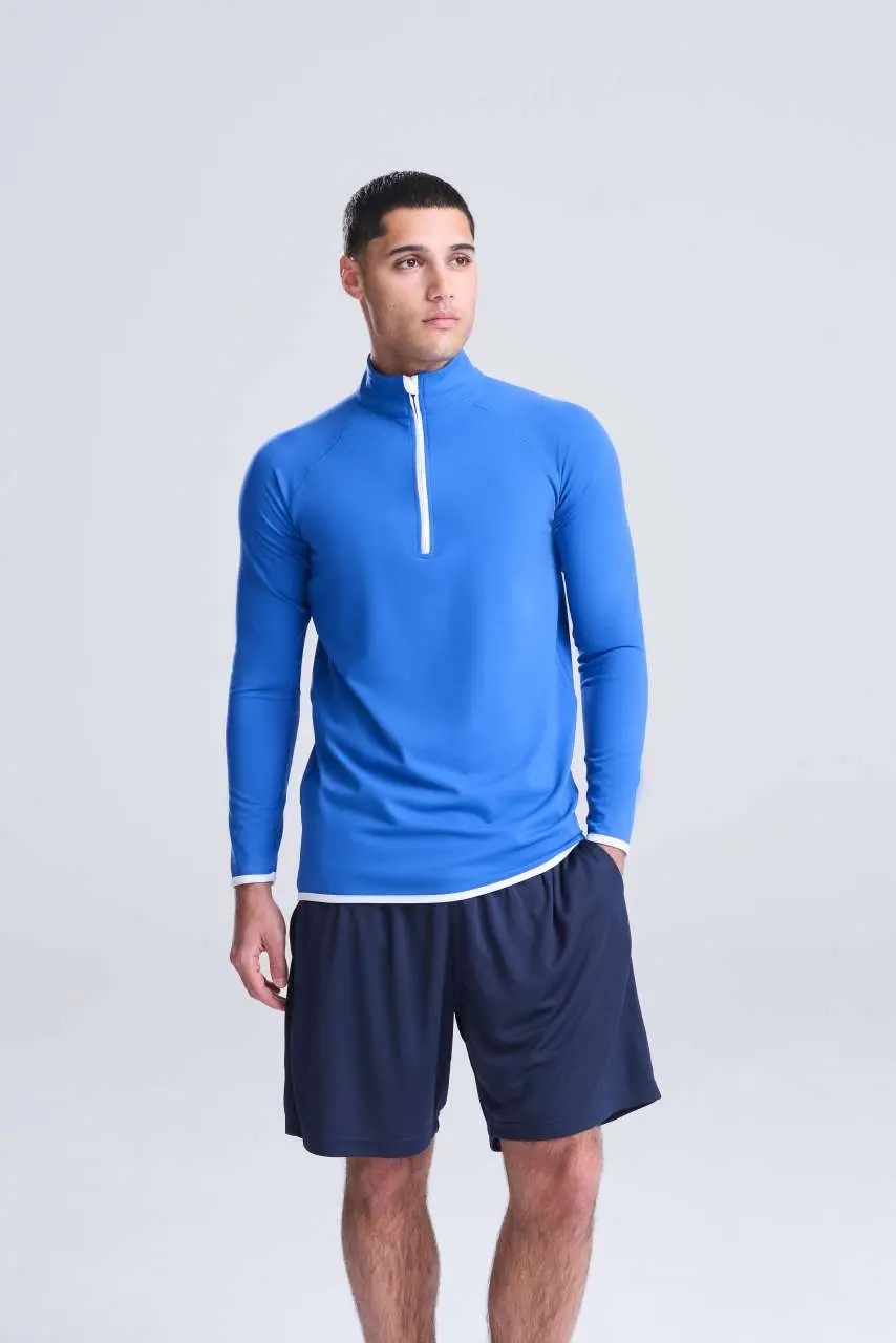 €18.6287% poliester / 13% elastan, slim fit, CoolFit mješavina tkanine s elastanom za rastezljivost i udobnost, reflektirajući detalji, polu-patentni zatvarač s podignutim ovratnikom, kontrastni obrubi od iste tkanine, odvojiva etiketa, raglan rukavi, UPF 40+ UV zaštita