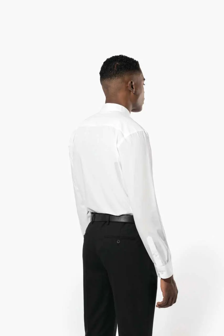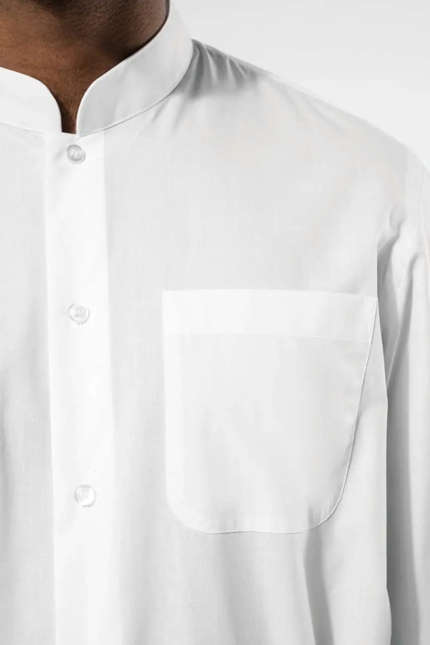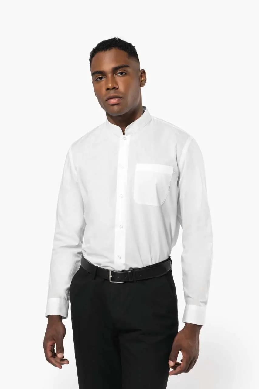 65% poliester/35% pamučni poplin Tkanina jednostavna za održavanje Mandarinska kragna Gumbi u istoj boji Zaobljeni džep na lijevoj strani prsa Podesive zaobljene manšete s gumbima 2 rezervna gumba Certificirano prema STANDARD 100 by OEKO-TEX®N° CQ1007/8, IFTH
