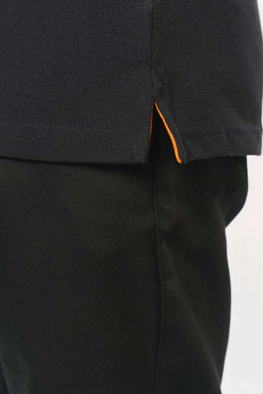 EX KA270 65% poliester/35% pamuk Češljani pamuk, piqué tkanina Perivo na 60°C Tretman protiv pillinga 3 gumba na placketu s kontrastnom unutarnjom trakom Rebrasti ovratnik s ojačanim vratom Kontrastni rubovi na ramenima i unutarnjoj strani vrata Rebrasti završetak s kontrastnim vrhovima na manšetama Bočni prorezi s kontrastnom trakom od kepera za dodatnu udobnost Dvostruki šav na rubu Idealno za svakodnevnu upotrebu
