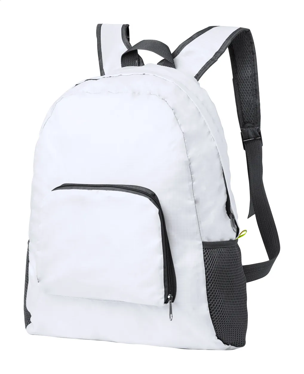 Sklopivi ruksak od ripstop materijala s džepovima na patentni zatvarač, podesivom naramenicom i mrežastim bočnim džepovima.