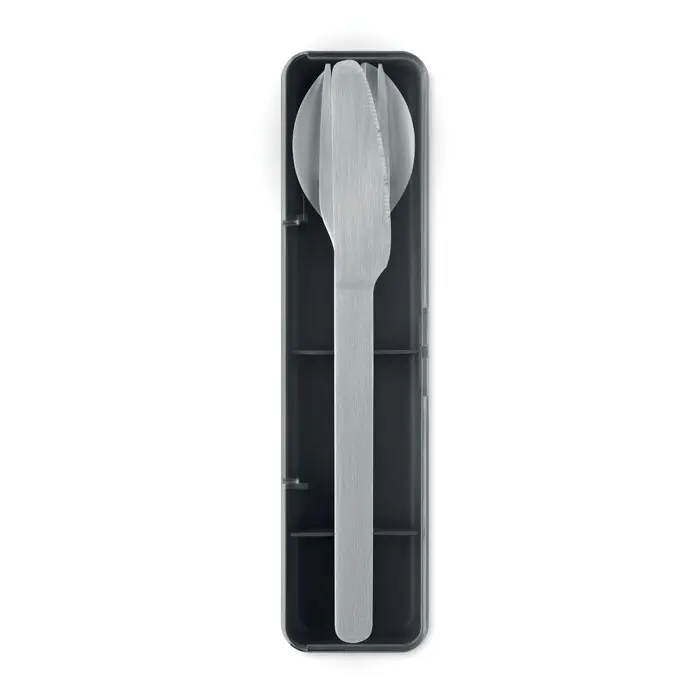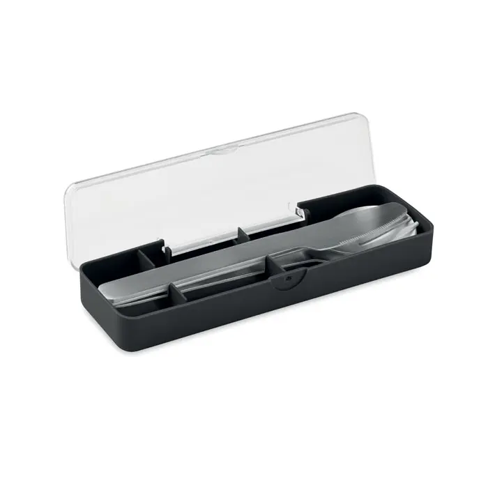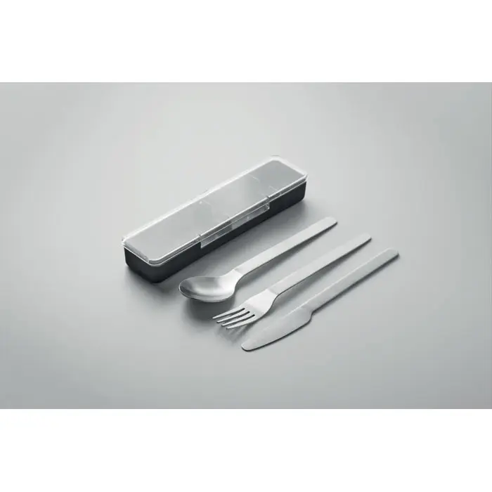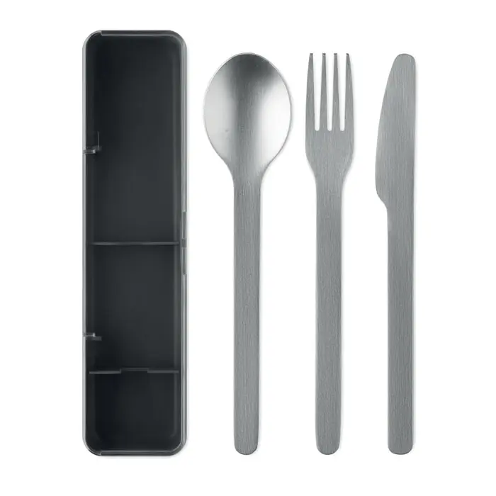 Set pribora za jelo od nehrđajućeg čelika s PP kutijom, uključuje vilicu, nož i žlicu