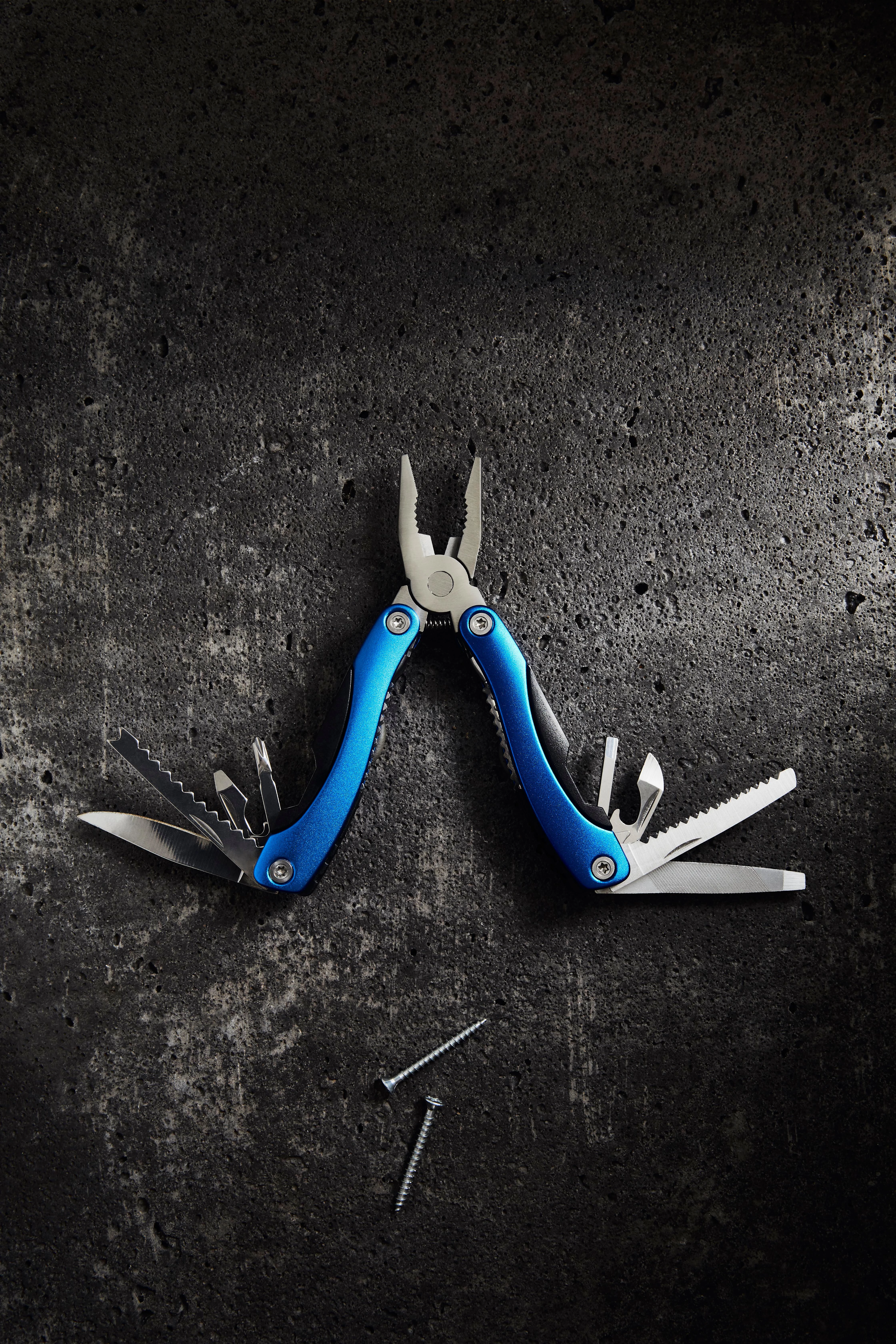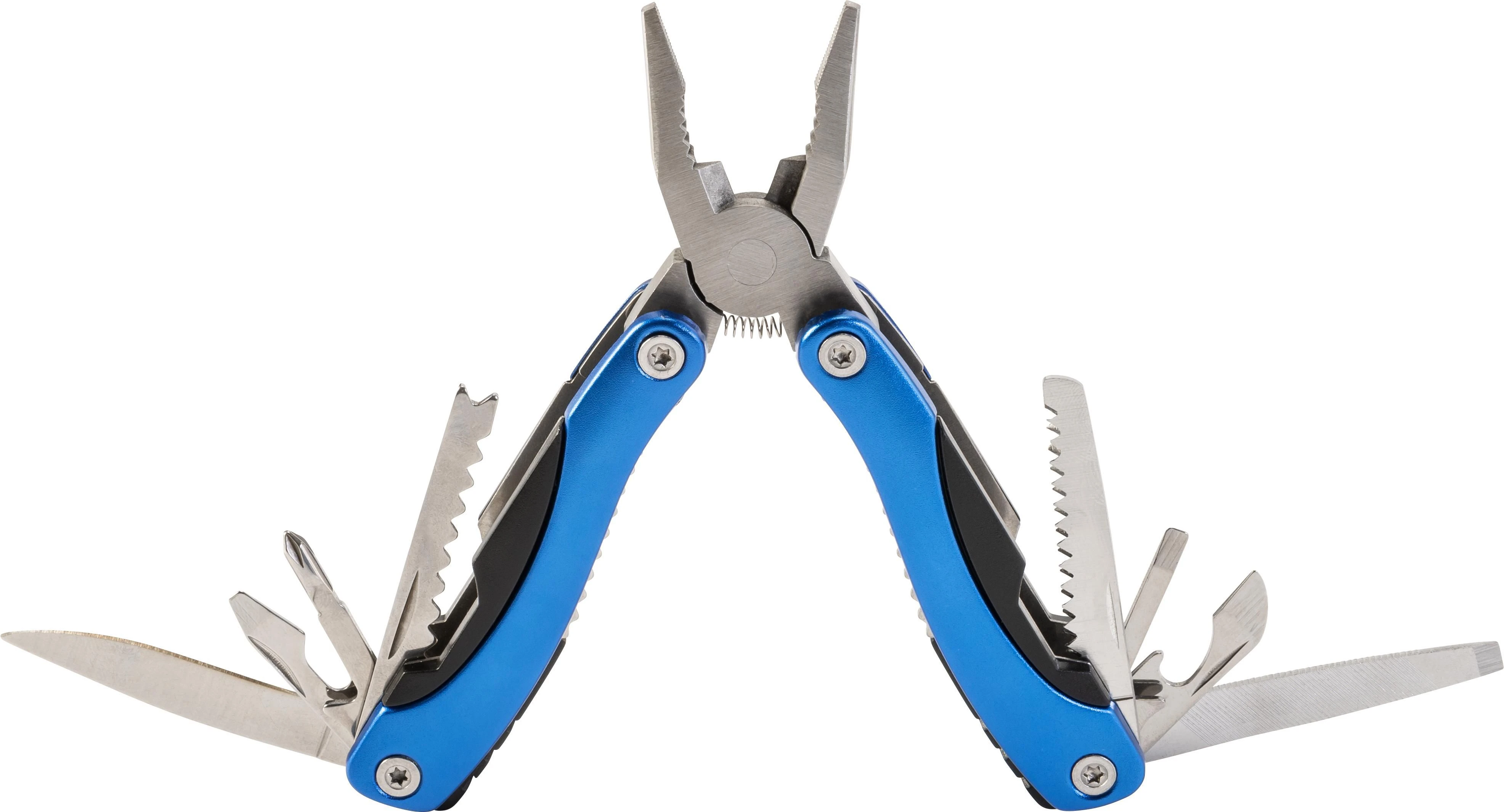 €6.58Višenamjenski alat od aluminija i nehrđajućeg čelika: kliješta, pila, nož, dva odvijača (ravni i križni), turpija, otvarač za boce, strugač za ribu, drobilica za orahe i ravnalo u inčima, pakirano u torbici