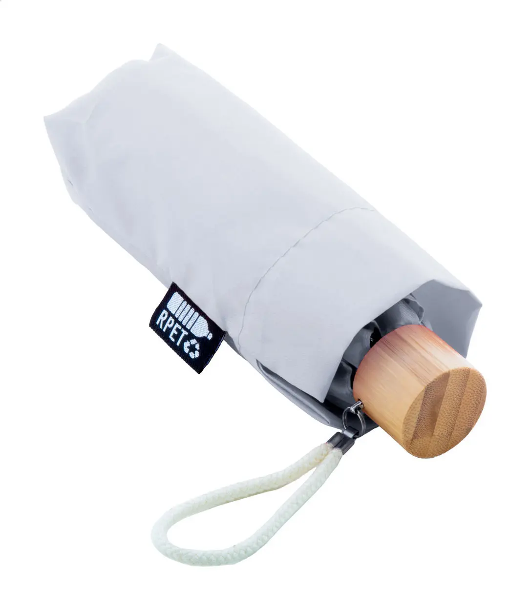 €14.06Ručni, vjetrootporni mini kišobran sa 3 preklopa i 6 panela u torbici u odgovarajućoj boji. S metalnim okvirom, rebrima od fiberglasa, drškom od bambusa i pamučnom vezicom za ruku. Izrađen od 190T RPET pongee materijala, s karakterističnom RPET etiketom.