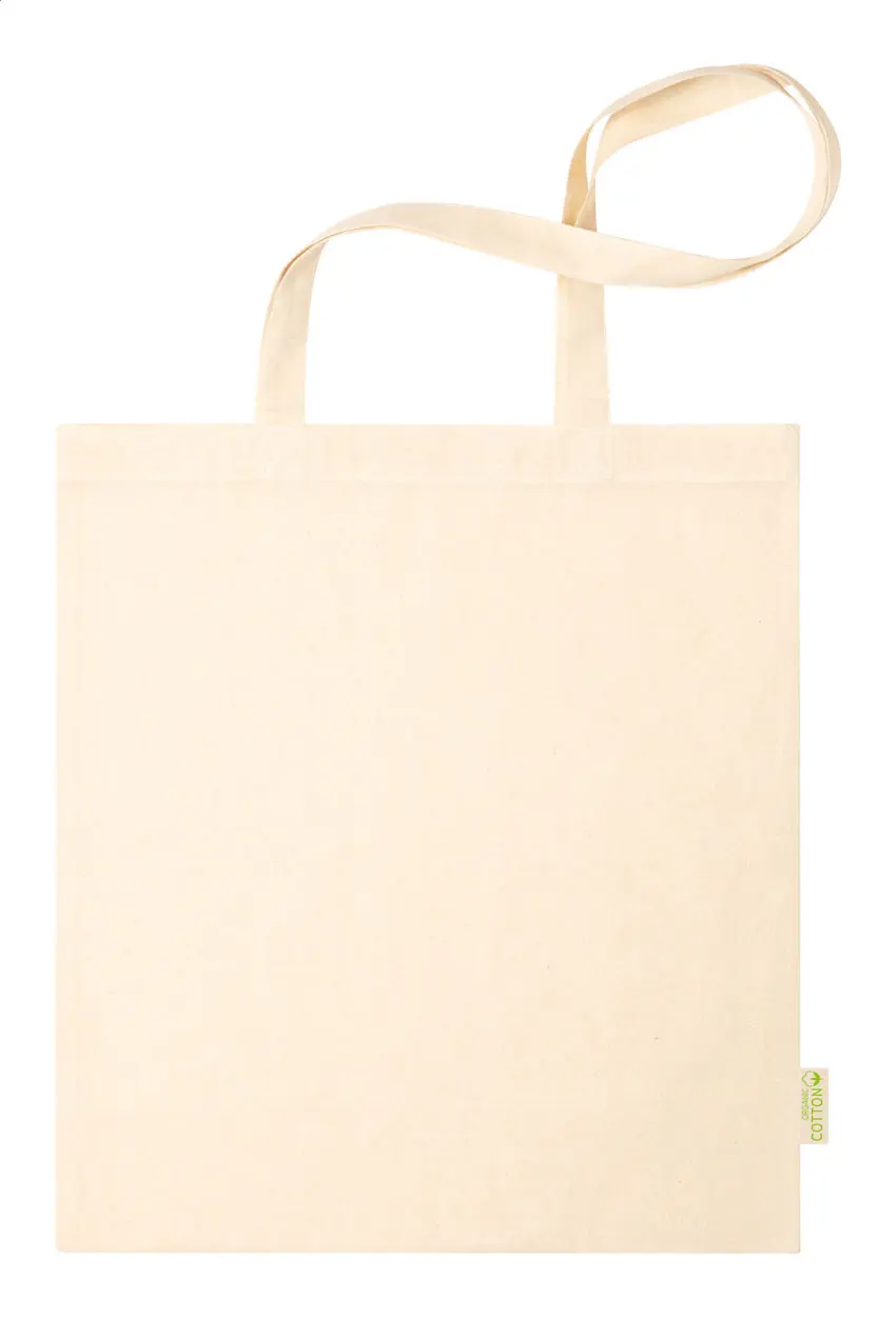 €2.93Ponovno upotrebljiva torba za kupovinu od organskog pamuka s dugim ručkama. 100% organski pamuk, 120 g/m².