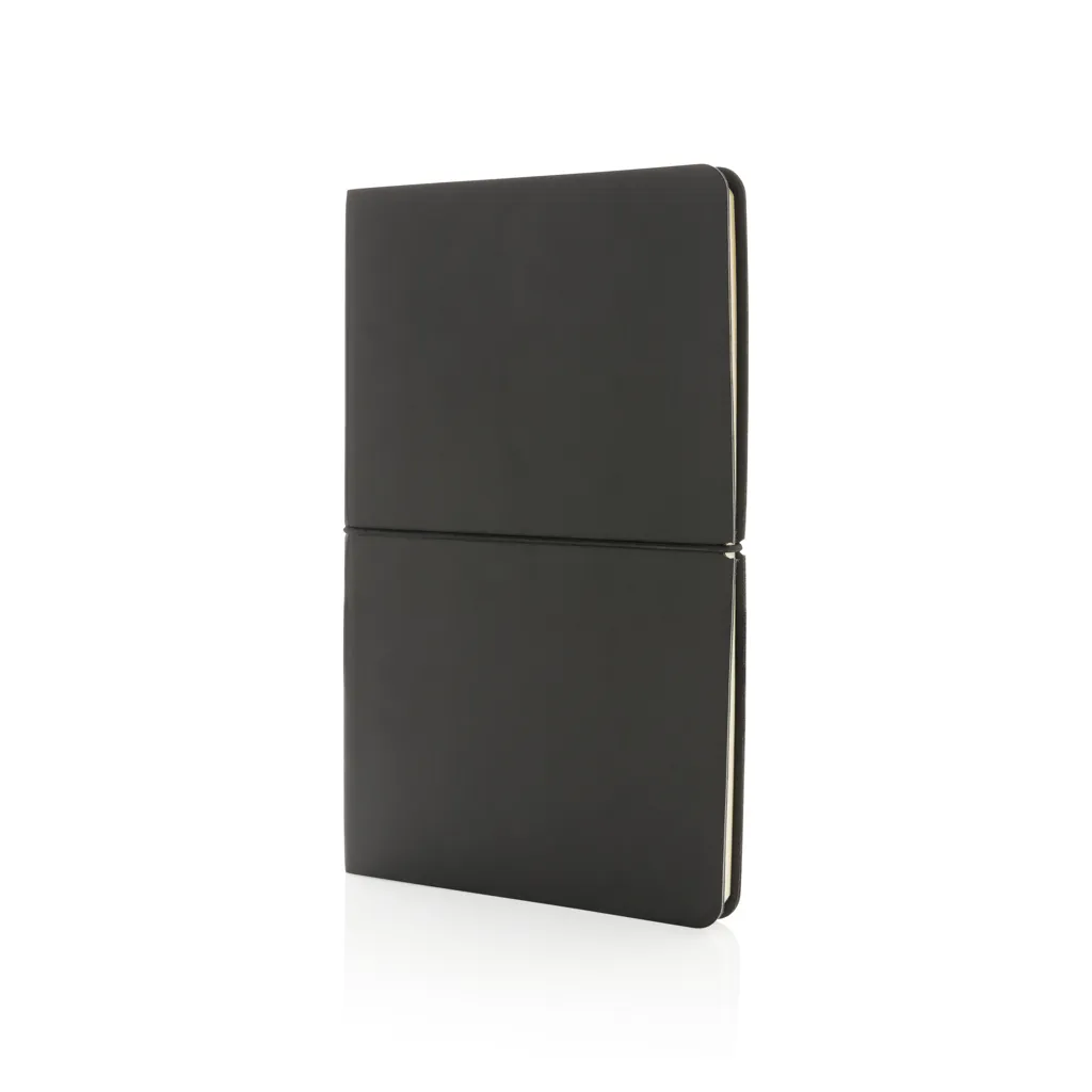 Ova moderna luksuzna A5 bilježnica iznimno je mekana i luksuzna te sadrži 96 listova i 192 stranice, što pruža dovoljno prostora za zapisivanje najboljih ideja. Izrađena je od krem papira od 80 gsm s linijama. Odličan esencijalni proizvod za zapisivanje obaveza/podsjetnika i profesionalno bilježenje na sastancima na poslu. Mekani izdržljivi PU omot s jednostavnim crnim elastičnim horizontalnim zatvaračem, što ga čini atraktivnim. Njegov savitljivi omot čini ga izvrsnim za upotrebu kao prijenosna bilježnica za putovanja, savršena za korištenje u pokretu.