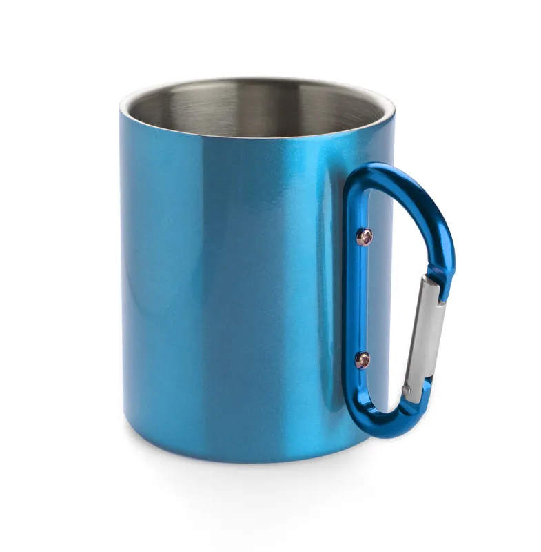 Vrlo praktična šarena šalica savršena za svako putovanje. Kapacitet šalice je 250 ml, dovoljno za topli napitak ili instant juhu. Dvostruki zidovi osiguravaju dobru izolaciju tako da nećete opeći ruku držeći šalicu s vrlo vrućim napitkom. Šalica je izrađena od visokokvalitetnog nehrđajućeg čelika. Ručka u obliku karabinera omogućuje lako i brzo pričvršćivanje šalice na ruksak.