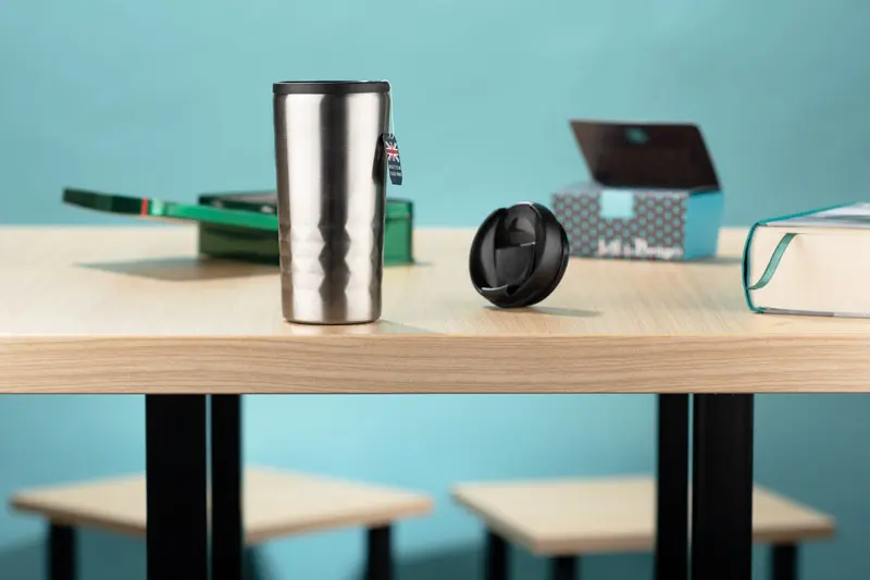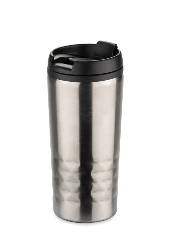 GALI šalica je praktična šalica za automobil, pogodna za piće u pokretu. Izrađena je od metala, ima navojni poklopac s praktičnim otvorom za piće i plastičnu unutrašnjost. Njen valoviti površinski dizajn pruža moderan izgled i siguran stisak. Kapacitet od 250ml čini je kompaktnom i praktičnom za upotrebu. Odlična je kao promotivni proizvod s mogućnošću brendiranja.