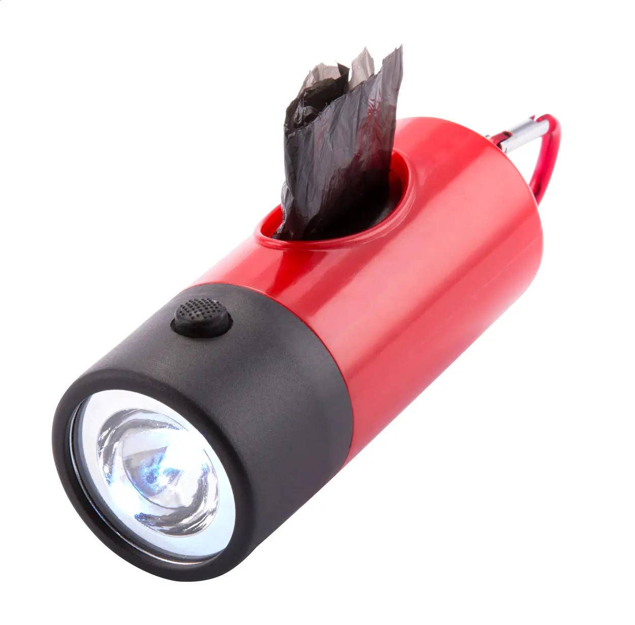 €3.22Plastični dozator za vrećice za pseći otpad s 1 LED svjetiljkom, 15 vrećicama i aluminijskim karabinerom. Uključuje baterije za gumb.