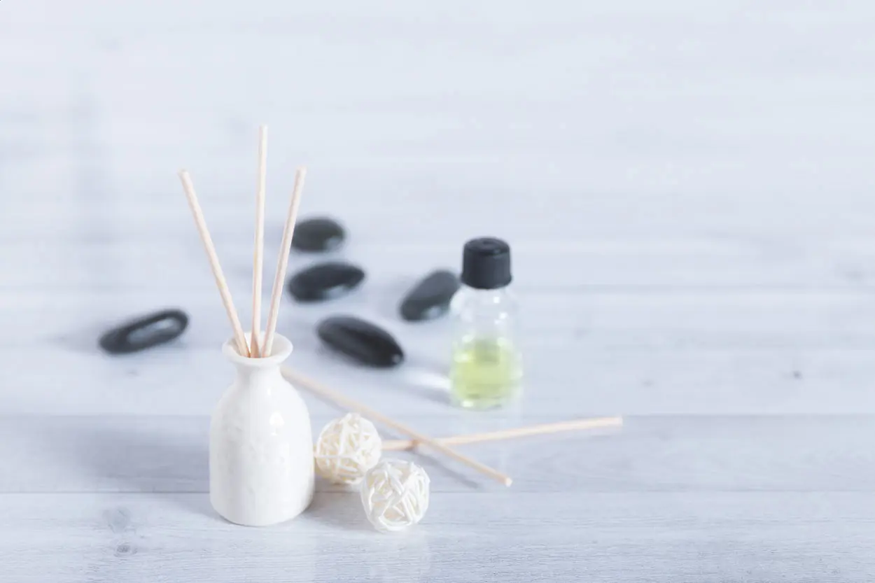 €10.74Set aroma difuzora s jasminovim uljem mini keramičkom vazom 5 drvenih štapića za difuzor i 2 drvene kuglice isporučuje se u bijeloj gift box kutiji