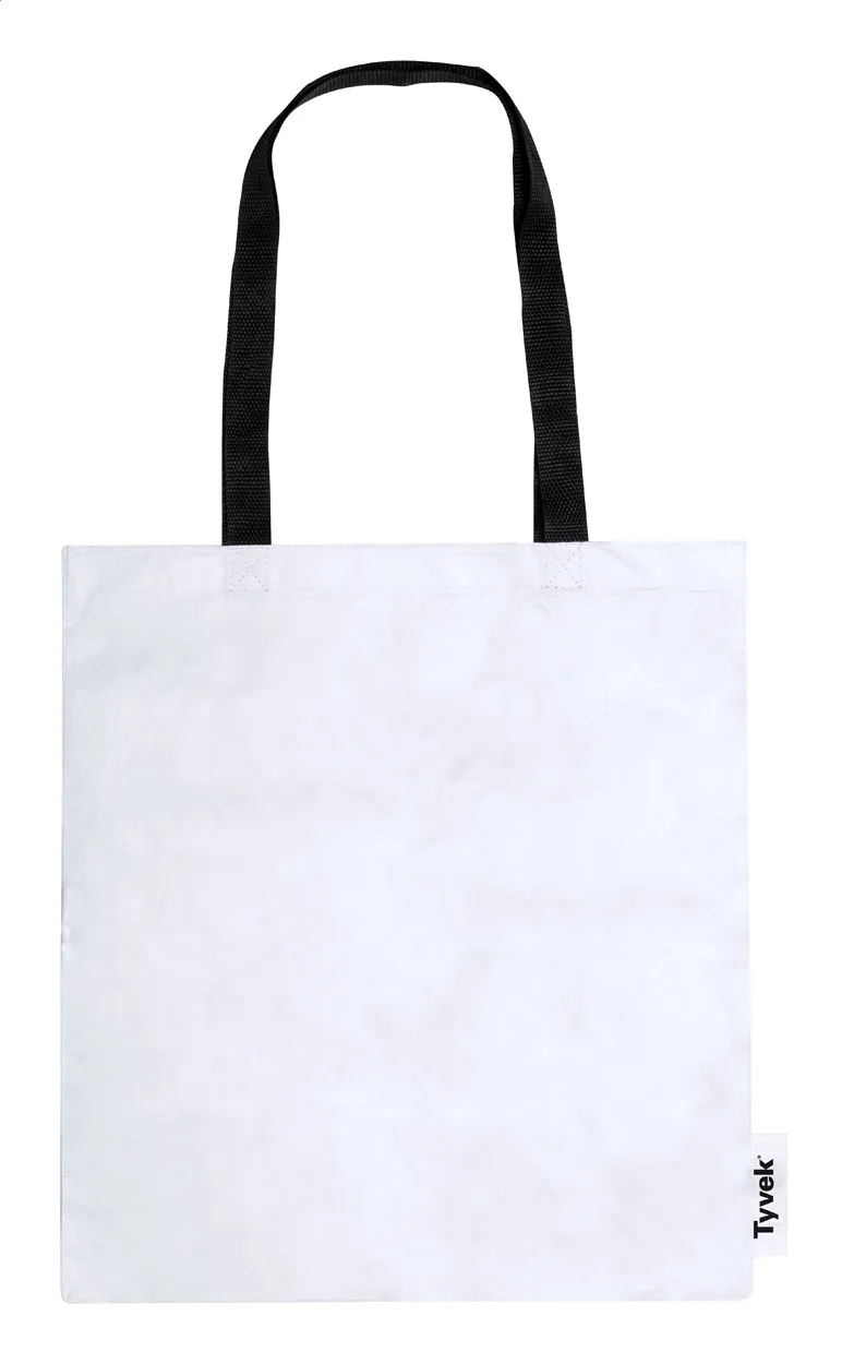 Tyvek® torba za kupovinu s kontrastnim crnim, dugim ručkama. Materijal Tyvek® 100% reciklabilan. Nosivost: 7 kg.