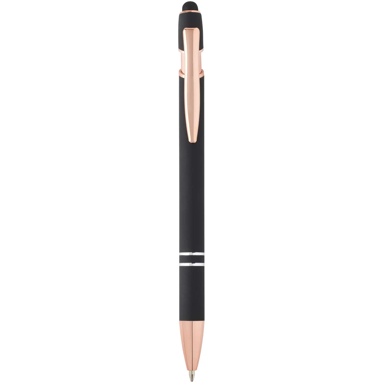 €0.49Kemijska olovka s tijelom od recikliranog aluminija i završnom obradom u boji ružičastog zlata, silikonski stylus za zaslone osjetljive na dodir, plava tinta, duljina pisanja 800 metara, debljina vrha 1,0 mm