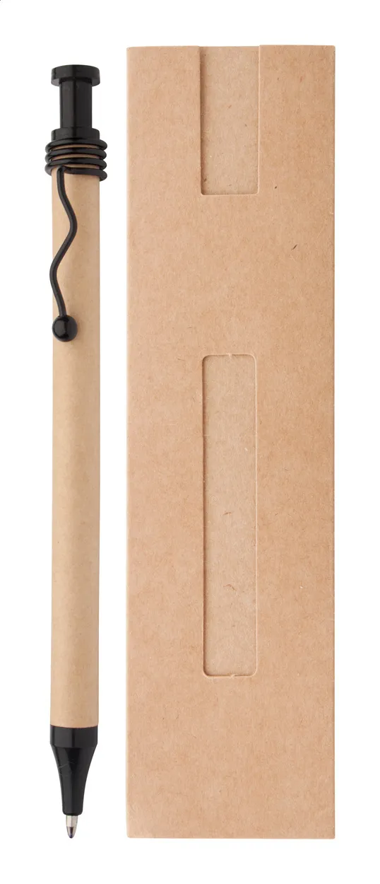 Kemijska olovka s kutijom, izrađena od recikliranog papira. S plavim punjenjem.