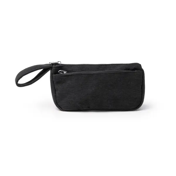 Corduroy toiletry bag with a main compartment and a front compartment, both with zip closures and metal zip pulls. It has an inner lining that provides greater resistance. In addition, it incorporates a hand handle made from the same material.