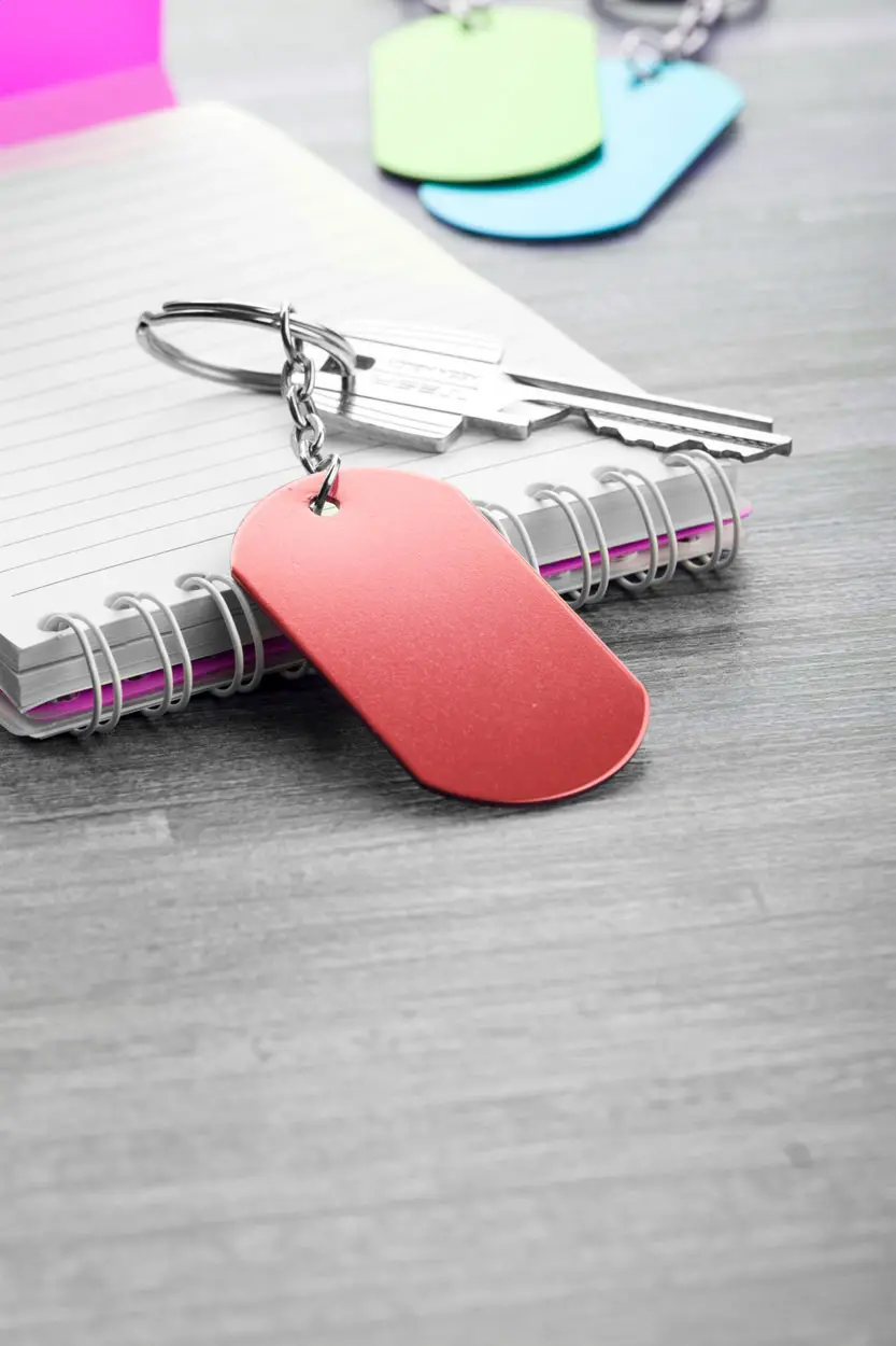 Aluminijski privjesak za ključeve s metalnim prstenom.