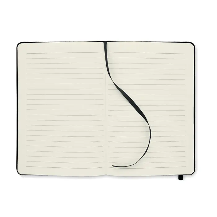 €1.44A5 bilježnica s tvrdim 600D RPET koricama. Ukoričena. 160 stranica recikliranog papira s linijama (80 listova). Odgovarajuća elastična traka za zatvaranje i vrpca za označavanje stranica. FSC®-certificirano | FSC MIX CREDIT, P7.1, FSC-C213206
