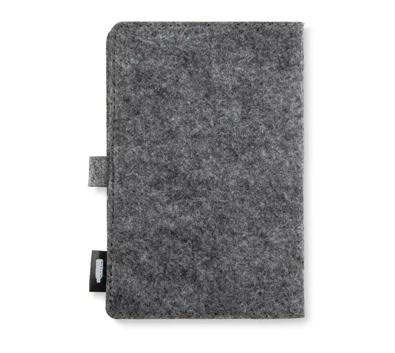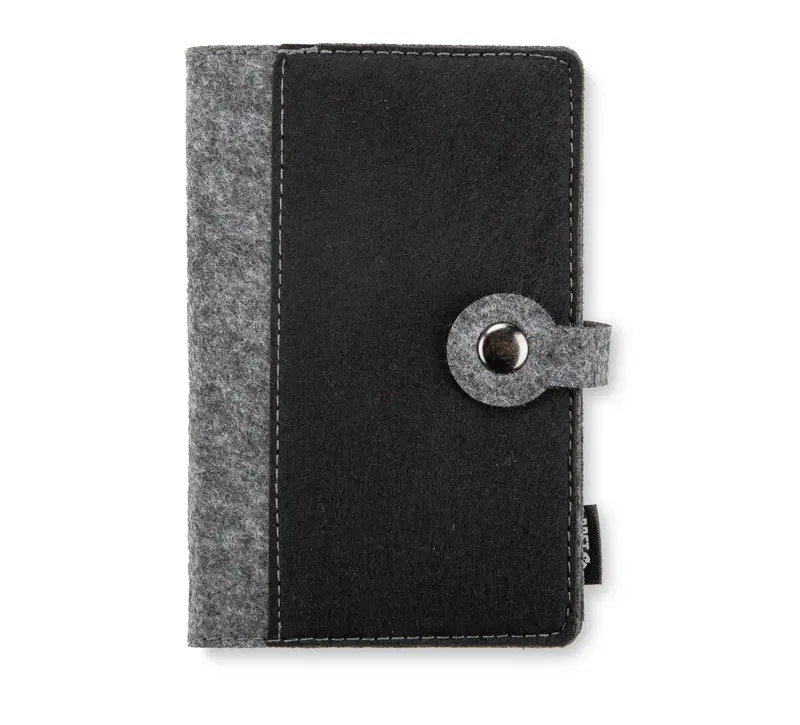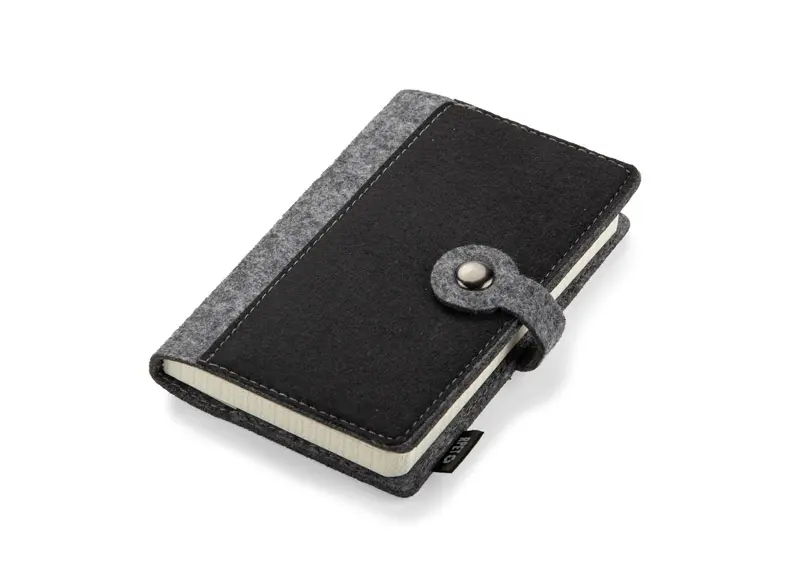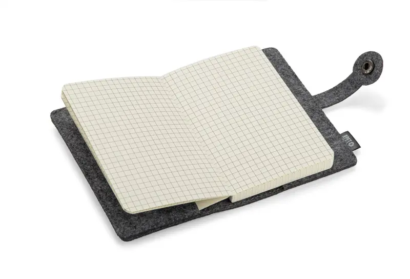 A6 EVERO bilježnica od filcanog rPET materijala s kopčanjem na gumb i kvadriranim stranicama, lagana i kompaktna, pogodna za putovanja ili sastanke
