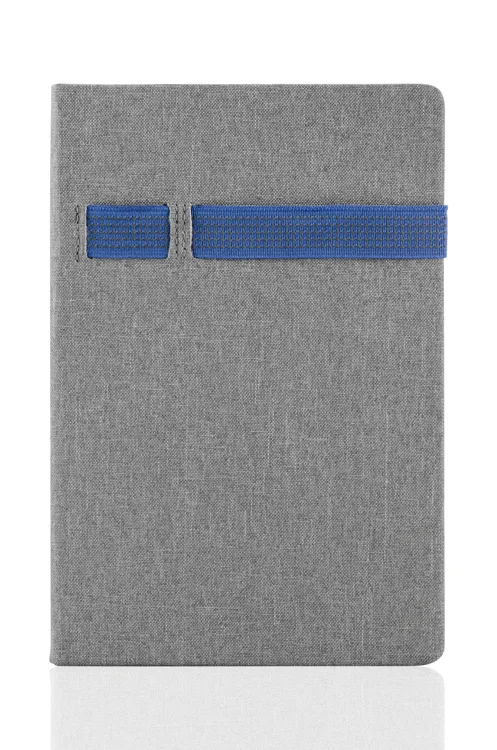 Bilježnica HOLDI ima vrlo zanimljivu sivu korice koje nalikuju na laneni materijal. Zatvara se obojanom gumicom koja može poslužiti i kao držač za kemijske olovke ili druge potrebne predmete. Bilježnica formata A5. 80 obloženih listova. Debljina papira: 80 gsm.