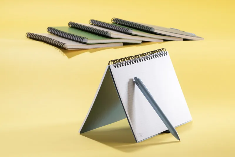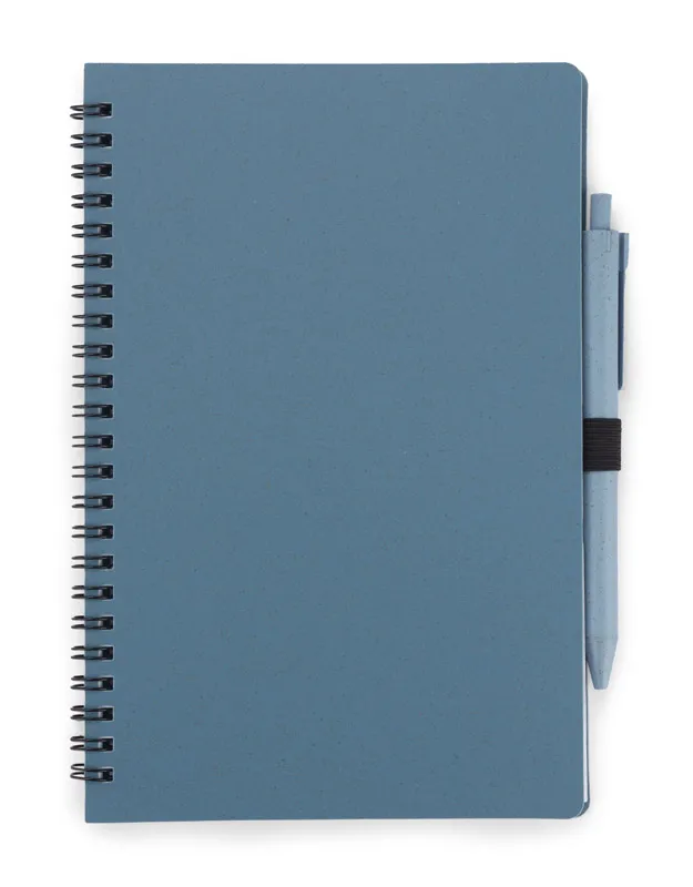 TRESA bilježnica s olovkom, boje usklađene s koricama. Olovka i korice bilježnice izrađene su od pšenične slame. Spiralno vezana bilježnica s 70 listova kockastog, recikliranog papira. Format A5. Punjenje kemijske olovke u plavoj boji.