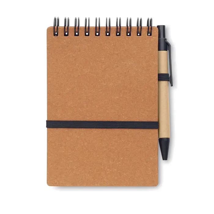 €0.87Bilježnica s koricama od recikliranog papira i PU (70% reciklirani papir, 30% PU), dvostruka spirala, 140 liniranih stranica od recikliranog papira (70 listova), kemijska olovka na pritisak s plavom tintom od recikliranog kartona i ABS dijelova, elastična traka za zatvaranje i držač za olovku, FSC certificirano | FSC MIX CREDIT, P7.1, FSC-C213206