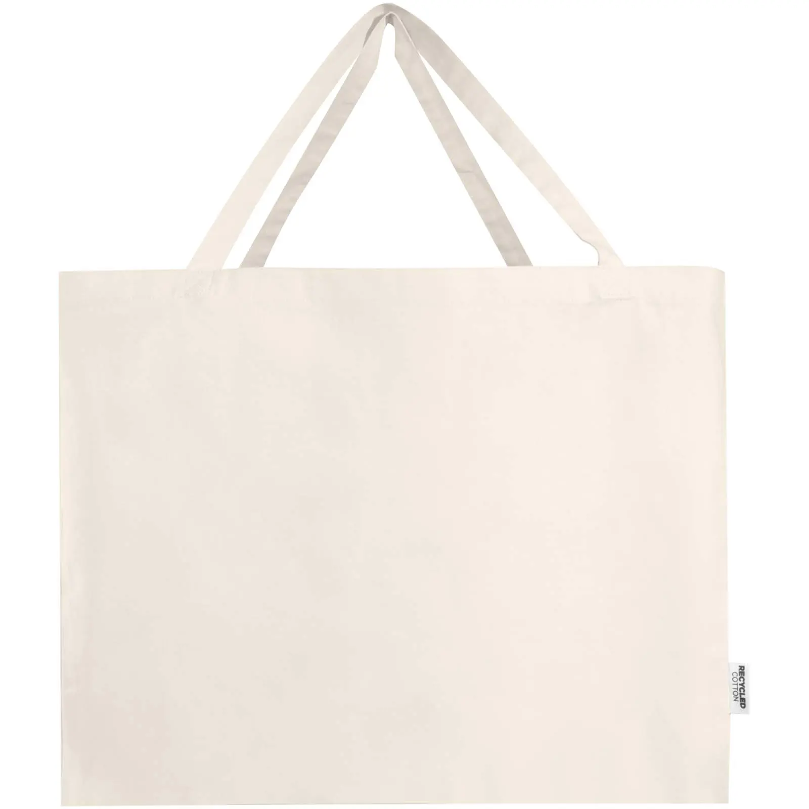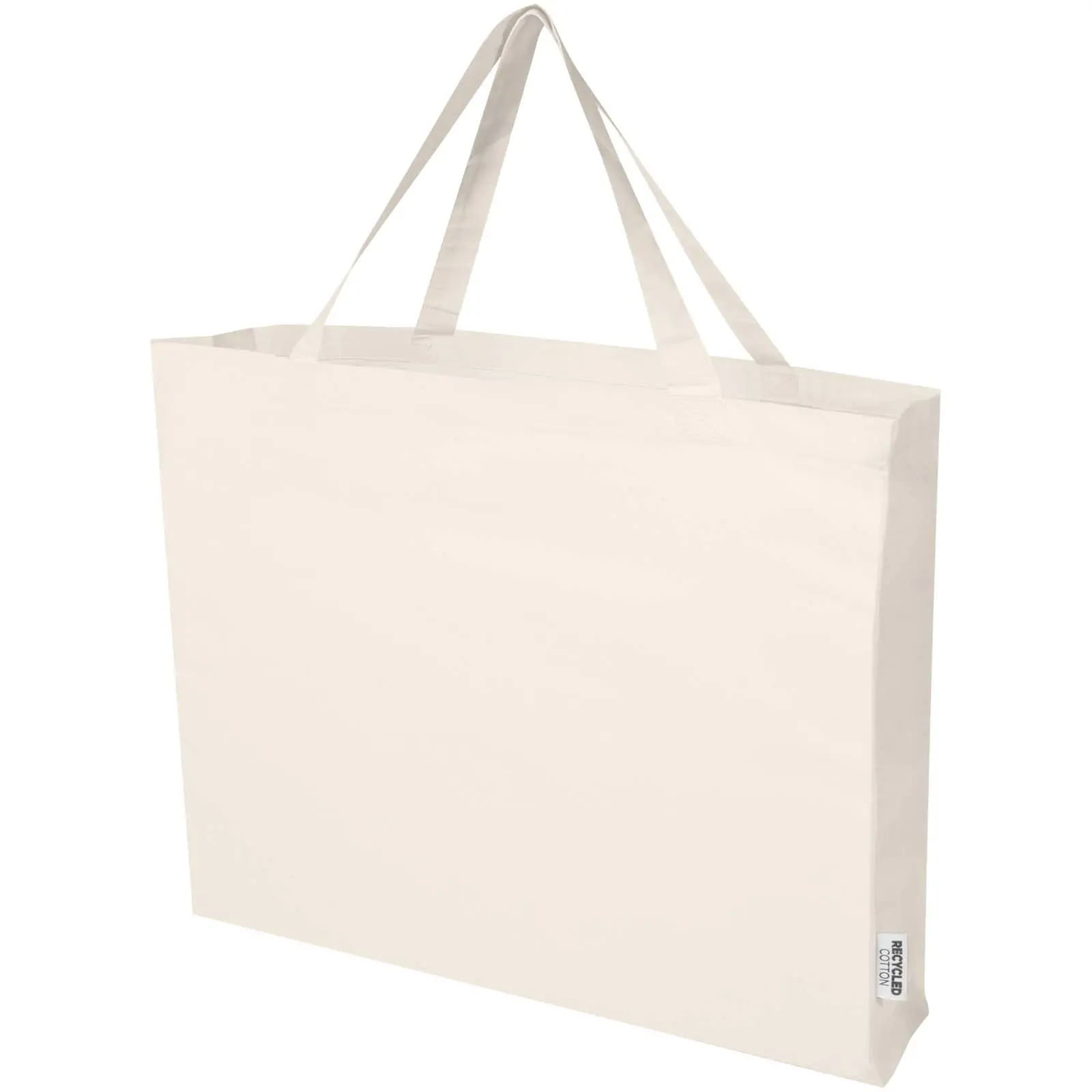 €3.19Velika tote torba Odessa od 100% GRS recikliranog pamuka s ručkama duljine 30 cm i glavnim pretincem s proširenjem, nosivost do 10 kg, pamučna tkanina 220 g/m², certificirani načini tiska, proizvedeno u Indiji