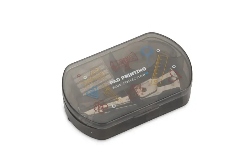 €5.30The DOCSY office kit is a compact solution containing the most necessary accessories: mini stapler, mini hole punch, adhesive tape and a supply of staples - all enclosed in a handy plastic case. Ideal for use in the field, on a small desk or as a practical promotional gadget for the office and education sector.