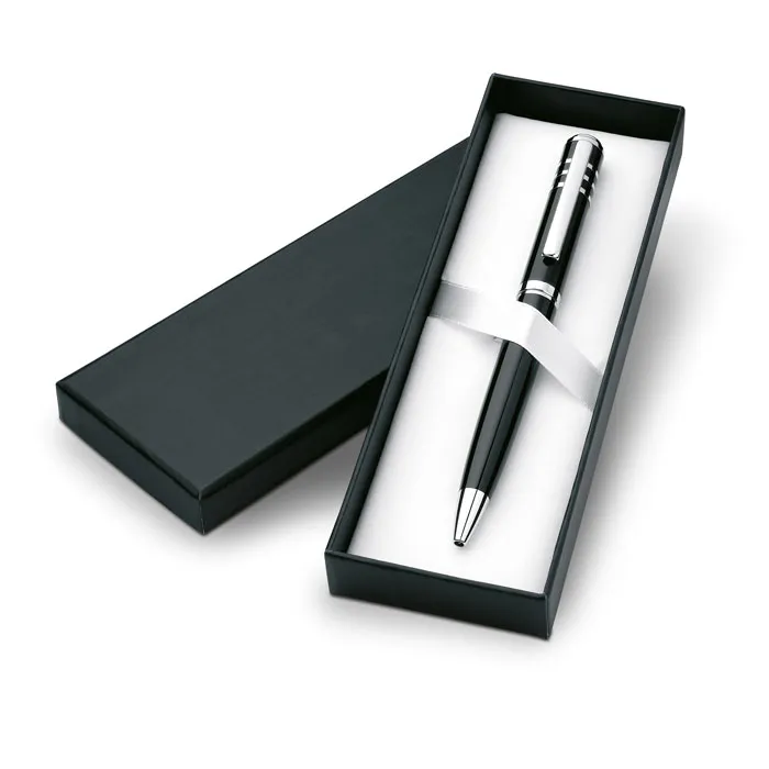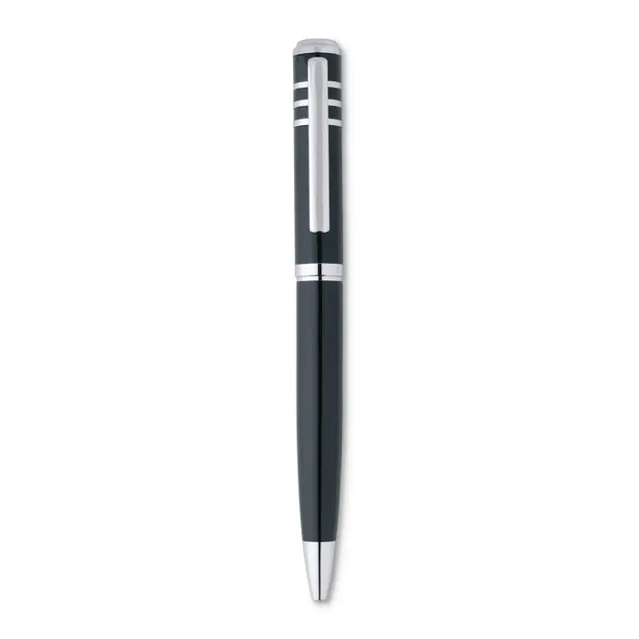 Metalna kemijska olovka na okretanje s lakiranim sjajnim završetkom u kartonskoj gift box kutiji, crna tinta