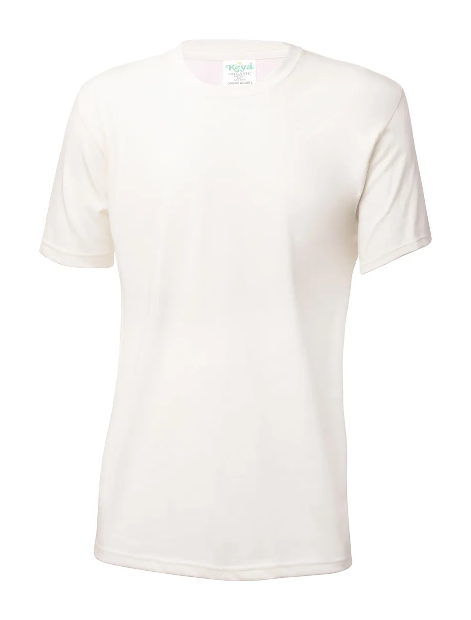 Ženska majica okruglog izreza u prirodnoj boji. 100% organski prstenasto pređen pamuk, 150 g/m². Proizvod marke Keya.