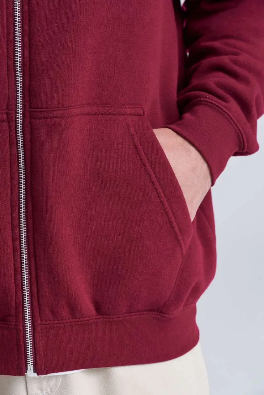 €22.3180% organski pamuk i 20% reciklirani poliester standardni kroj certificirani organski konac i tvornica certificirani reciklirani konac i tvornica hoodie s patentnim zatvaračem metalni YKK patentni zatvarač glavni patentni zatvarač prekriven istom tkaninom dvostruka tkanina na kapuljači vezice u boji tkanine klokanski džepovi unutarnja strana od brušenog flisa rebraste manšete i porub dvostruki šav odvojiva etiketa tkanina s vanjske strane 100% pamuk