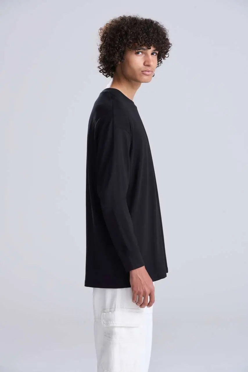 €8.85100% češljani ringspun pamuk, oversized kroj, bočni šavovi, dugi rukavi s manšetama, rebrasti okrugli izrez s trakom na vratu, ušiveni rukavi, samo oznaka veličine radi lakšeg rebrandiranja – crno kodirana za unisex, češljani ringspun pamuk za dodatnu udobnost, površina pogodna za tisak ili vez, dvostruki šavovi, tamne boje prati odvojeno