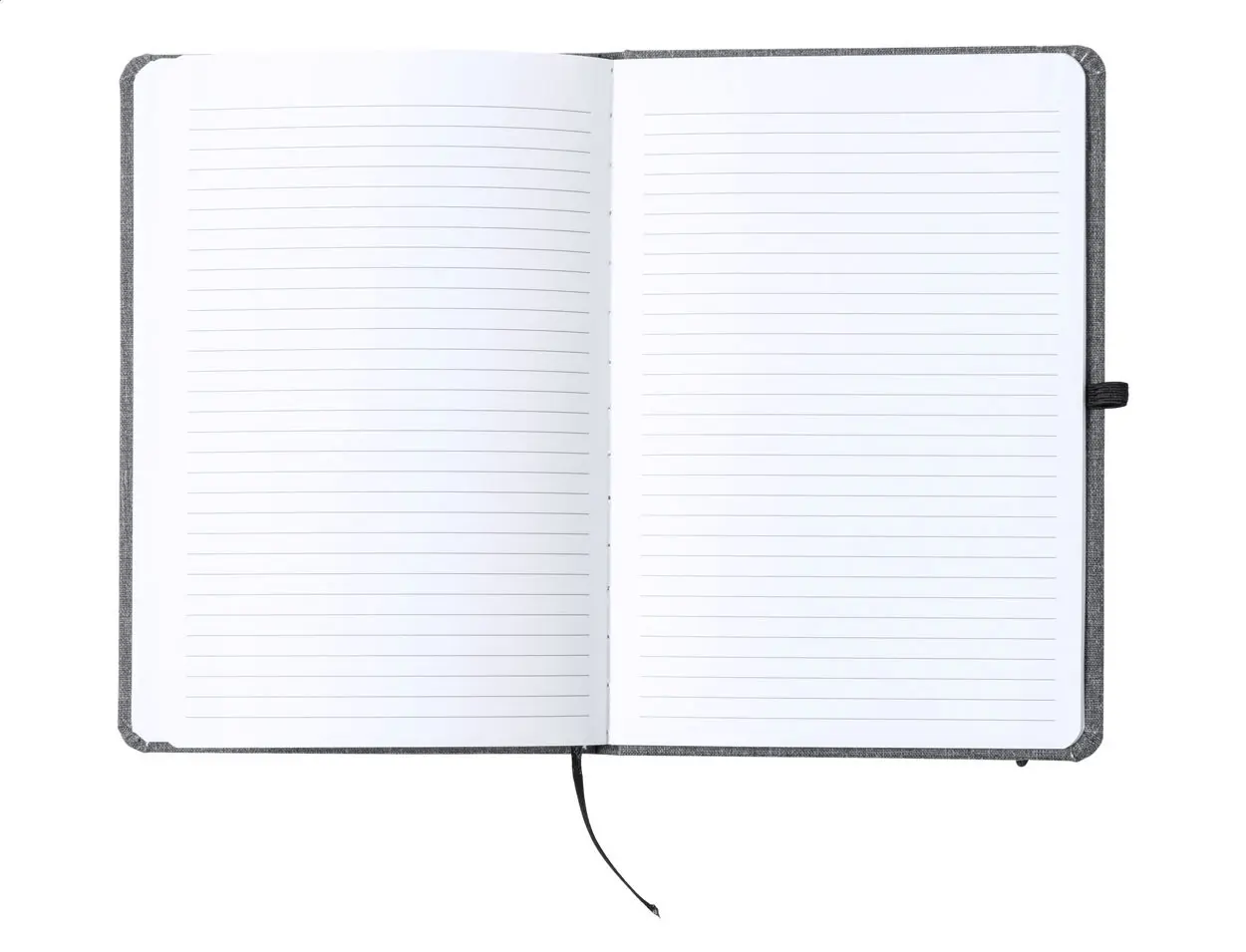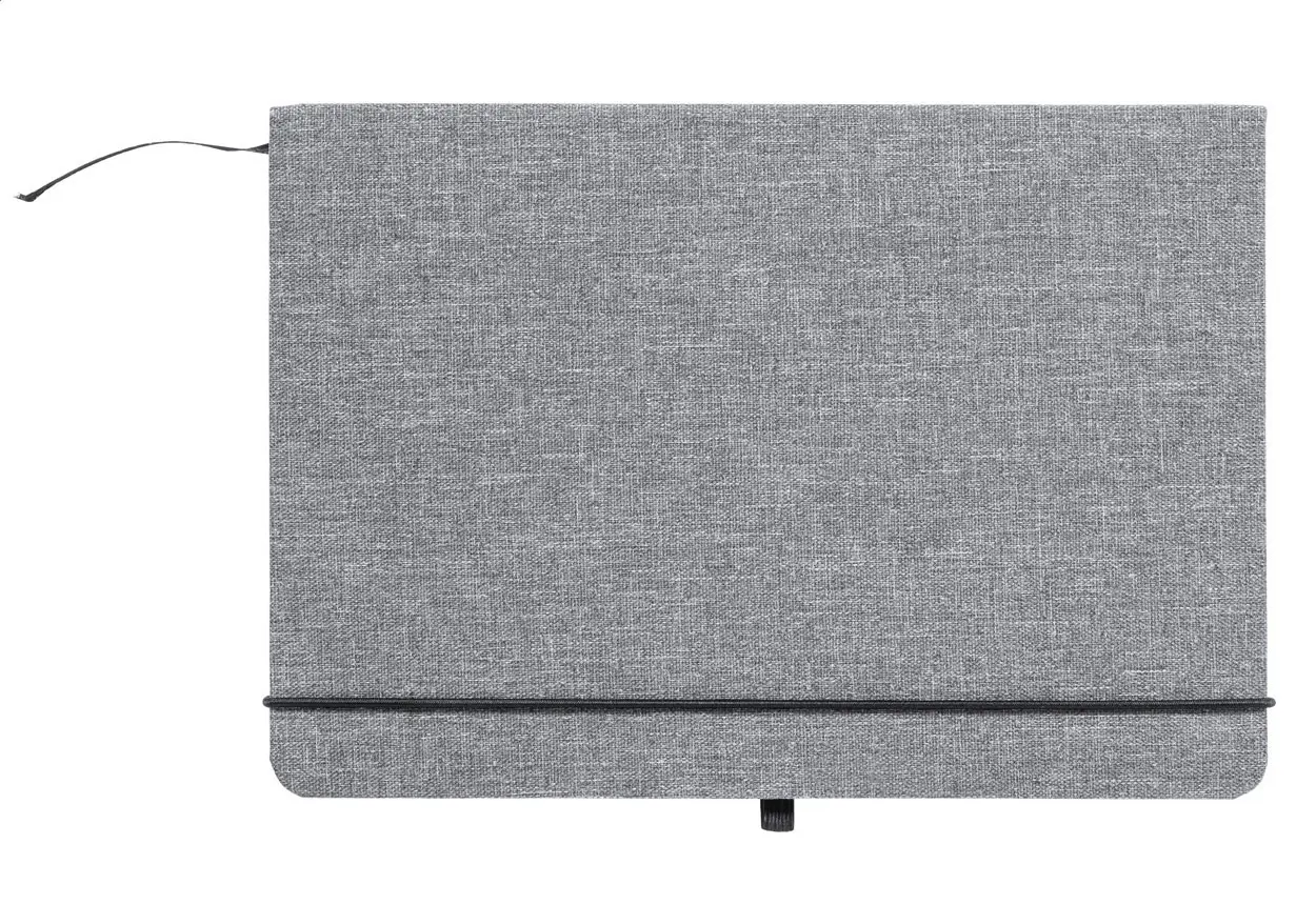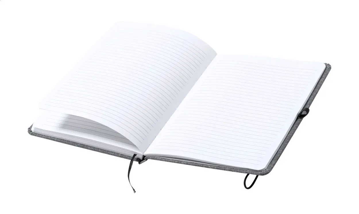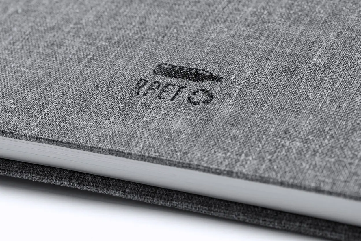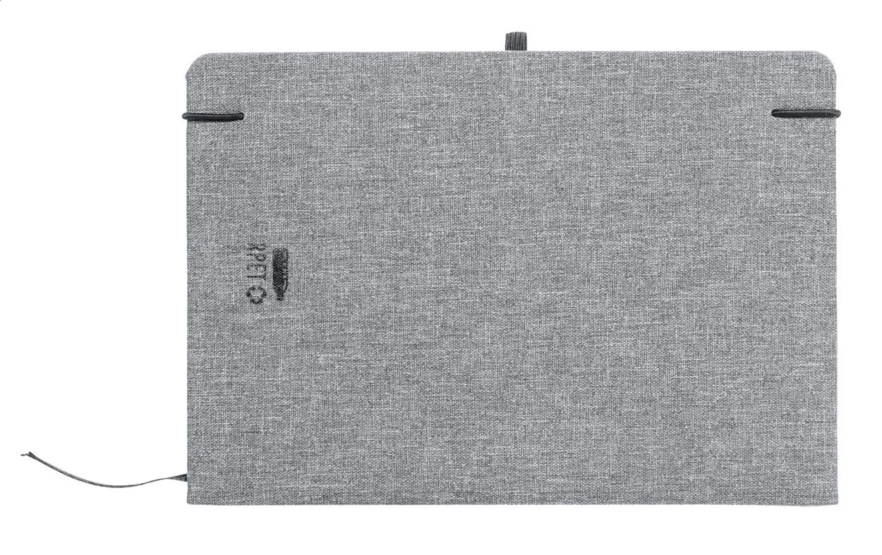 €5.55Bilježnica presvučena 600D RPET poliesterom sa 100 liniranih listova, oznakom za stranicu i elastičnom trakom, format A5