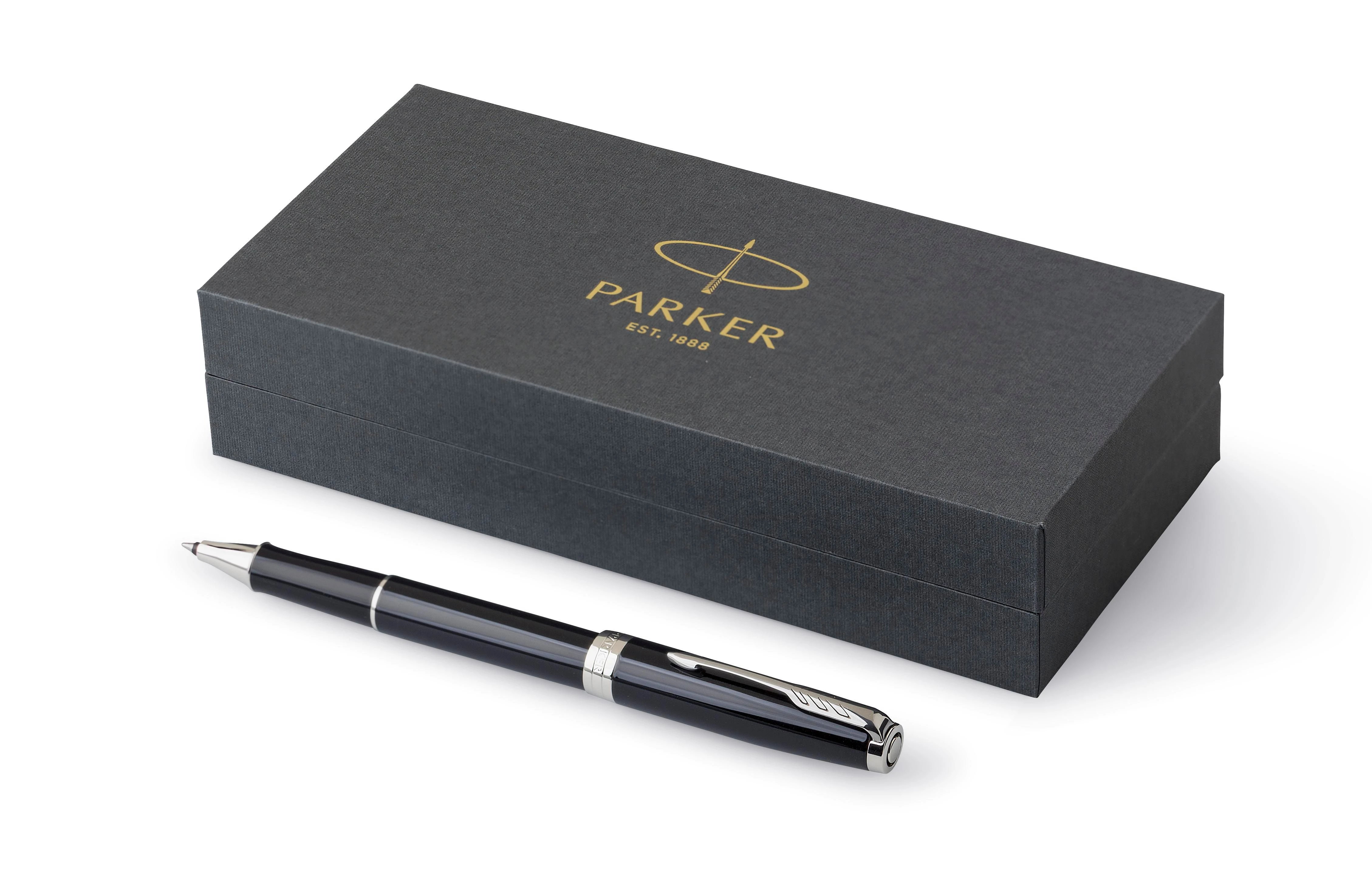 Parker Sonnet rollerball od nehrđajućeg čelika i lakiranog mesinga s poklopcem, crna tinta, olovka prethodno zapakirana u gift box