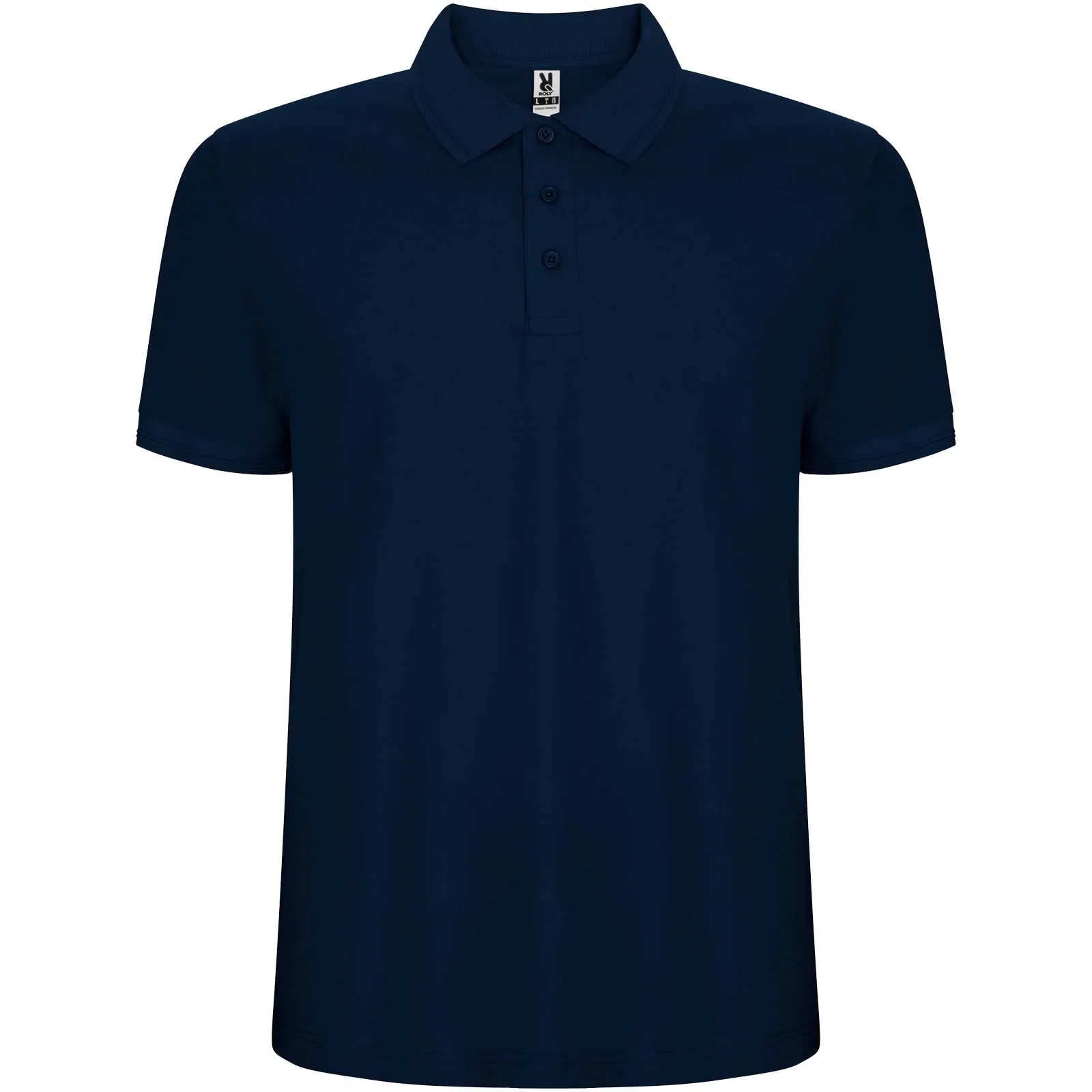 Polo majica kratkih rukava. Ovratnik i rub rukava u 1x1 rebrastoj tkanini s detaljima. Plaket s 3 gumba. Pojačani prekriveni šavovi na ovratniku. Bočni prorezi i opcionalni džep. Perivo na 60 stupnjeva. Odvojiva etiketa. Tretman protiv guljenja.