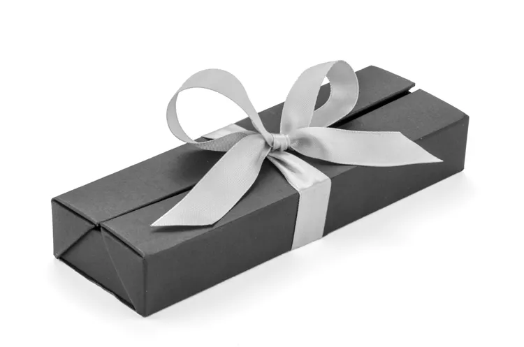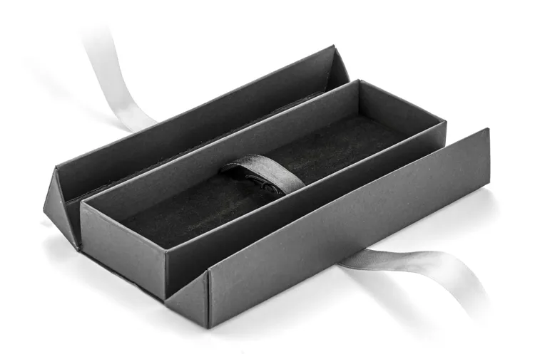 €1.90Držač za pisaće alate, izrađen od papira. Pričvršćen vrpcom koja se može zavezati u dekorativnu mašnu.
