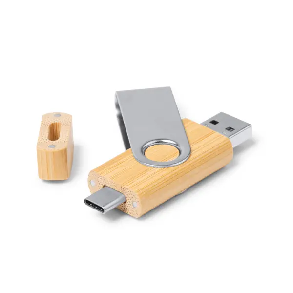 €11.07OTG 3.0 USB memorija s kućištem od bambusa, ulaz i izlaz type-C i USB, metalni rotirajući klip, kapacitet 32 GB, isporuka u eko dizajnerskoj kutiji