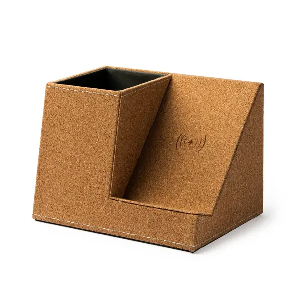 €15.66Držač za olovke s integriranim bežičnim punjačem od prirodnog pluta, uključuje 2 dodatna USB priključka straga, snaga 5W, kabel uključen
