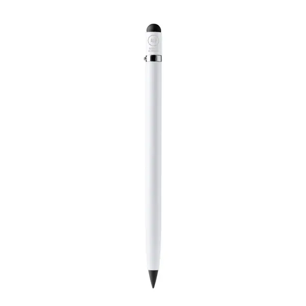 Olovka s tijelom od recikliranog aluminija i gumicom, s izmjenjivim grafitnim vrhom za beskonačno pisanje, gumica na jednom kraju