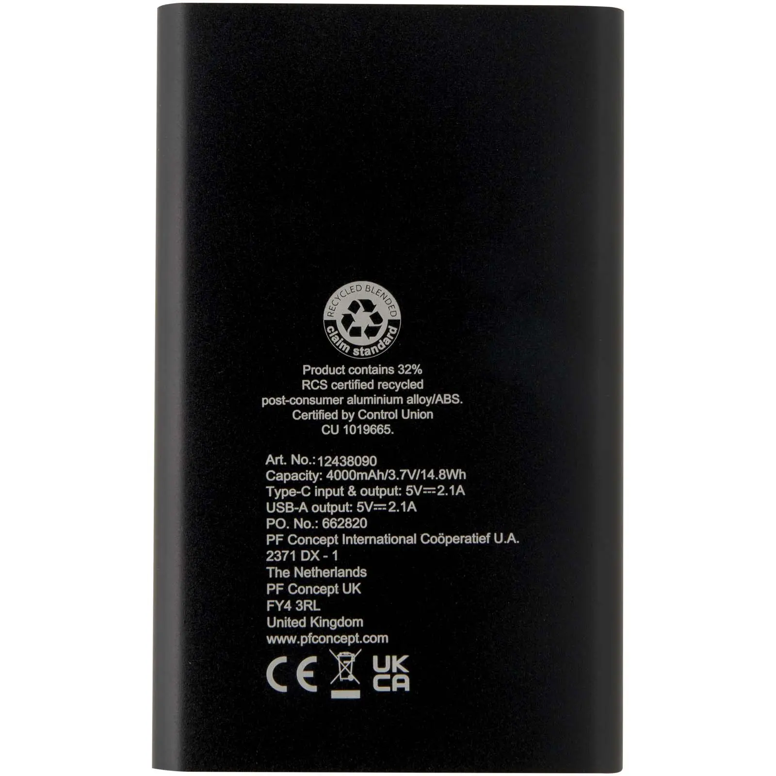 pep powerbank od recikliranog aluminija, 4000 mah, type-c